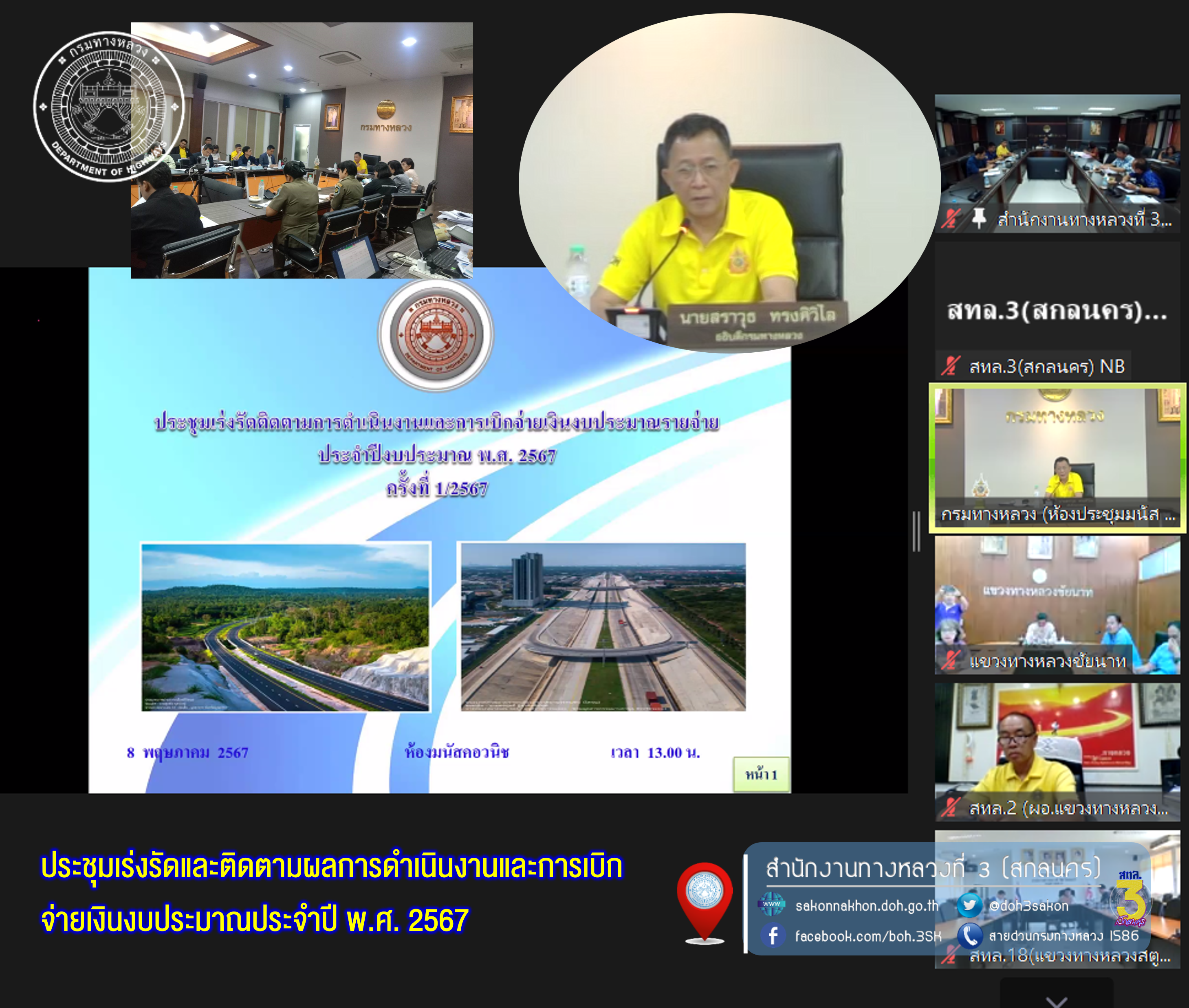ประชุมเร่งรัดและติดตามผลการดำเนินงานและการเบิกจ่ายเงินงบประมาณประจำปี พ.ศ. 2567 ครั้งที่ 2/2567 ของกรมทางหลวง