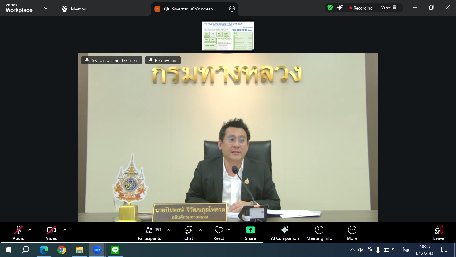 ประชุมผู้บริหารกรมทางหลวง ประจำเดือนธันวาคม 2568 ครั้งที่ 3/2568