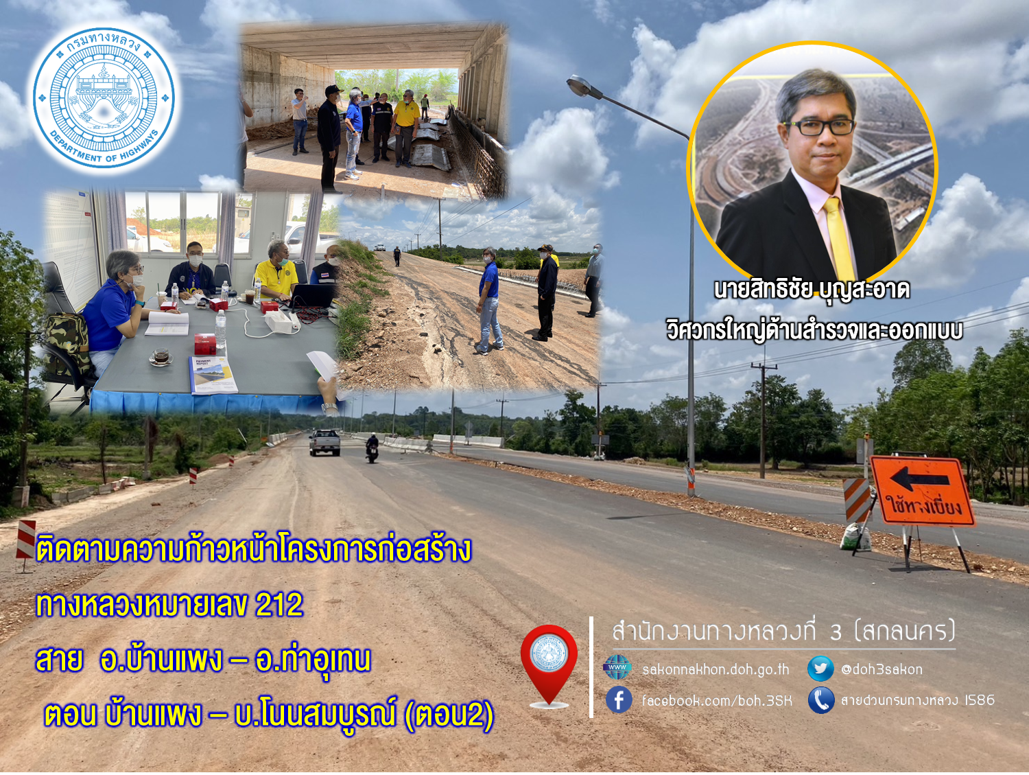 ติดตามความก้าวหน้าของโครงการก่อสร้างทางหลวงหมายเลข 212 สาย อ.บ้านแพง – อ.ท่าอุเทน ตอน อ.บ้านแพง – บ.โนนสมบูรณ์ ตอน 2