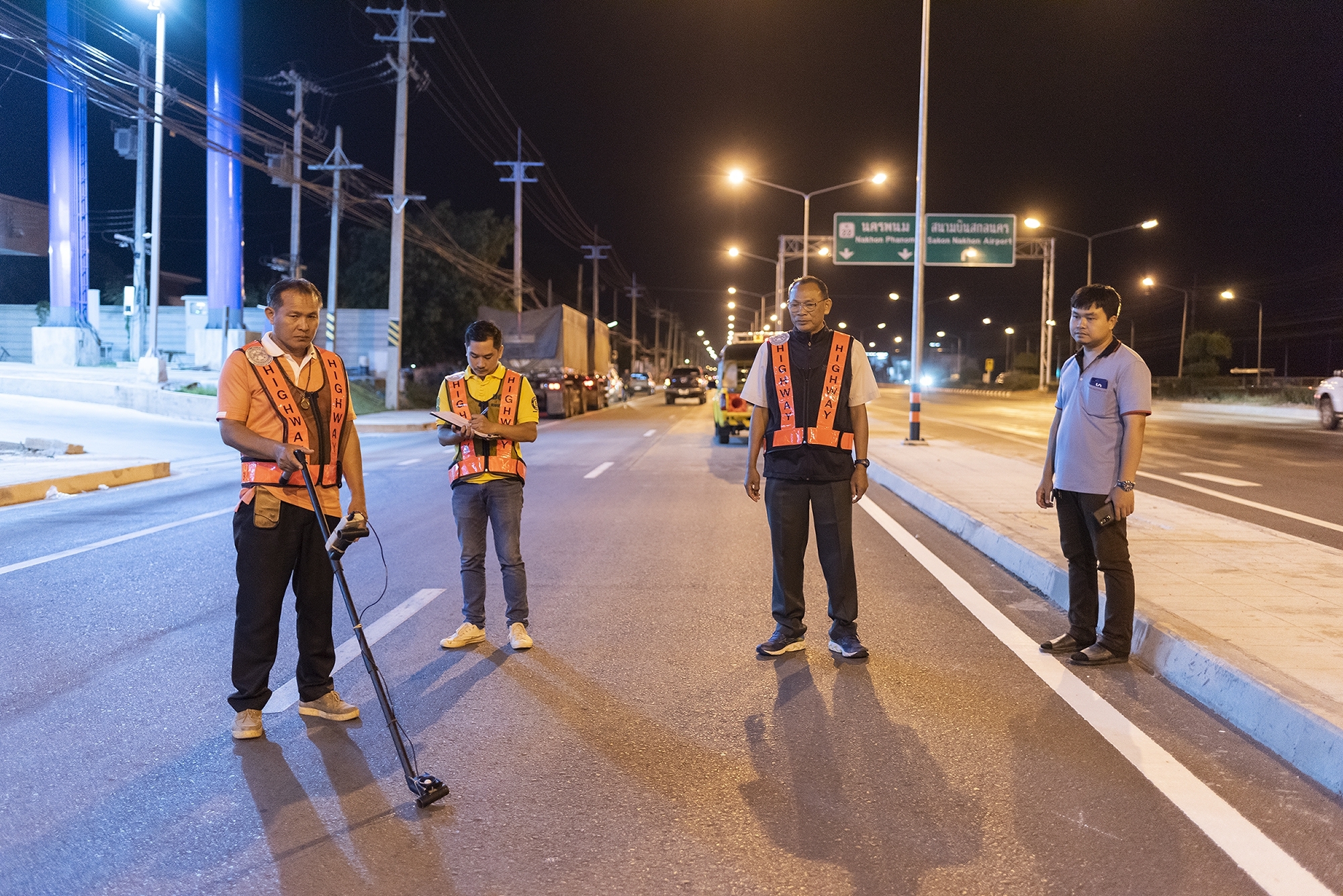 เมื่อวันที่ 27 พ.ย.2563 นายวสันต์ สิทธิเวช ผู้อำนวยการส่วนไฟฟ้า นำเจ้าหน้าที่ส่วนไฟฟ้า สำนักงานทางหลวงที่ 3 (สกลนคร) พร้อมด้วยเจ้าหน้าที่โครงการก่อสร้างฯ เพื่อตรวจวัดค่าความเข้มแสงของงานติดตั้งไฟฟ้าแสงสว่าง ของโครงการก่อสร้างทางหลวงหมายเลข 22 สกลนคร - นครพนม ตอน 1 ระหว่าง กม.155+480 - กม.156+950, กม.180+540 - กม.188+400 และ กม.189+100 - กม.197+676 ระยะทางประมาณ 17.906 กิโลเมตร ได้ตรวจวัดค่าความเข้มแสงของงานติดตั้งไฟฟ้าแสงสว่าง ชนิดโคม HIGH PRESSURE SODIUM 250 WATTS เสาสูง 9.00 เมตร ในทางหลวง ดังนี้
