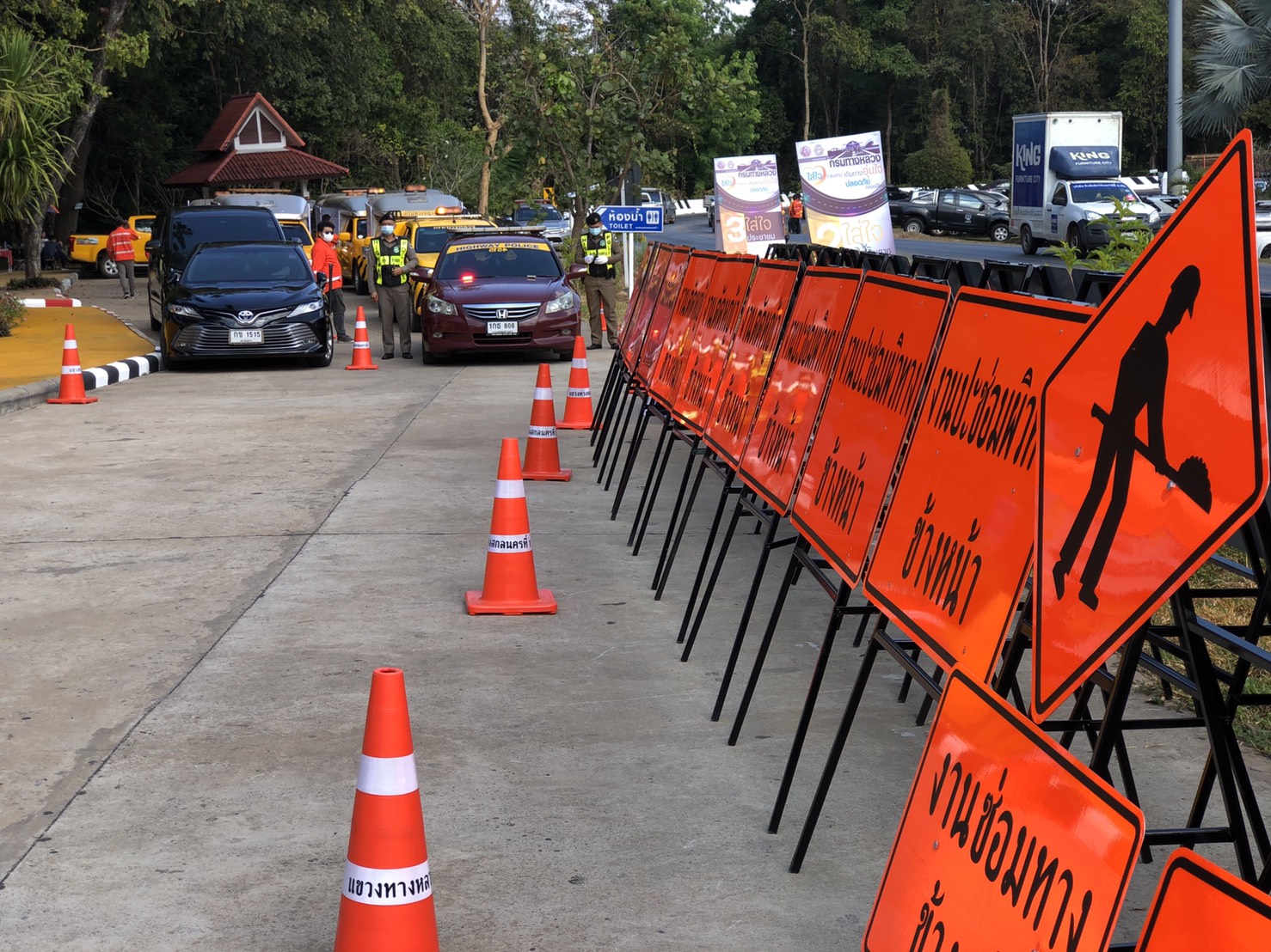 พิธีเปิดศูนย์อำนวยความสะดวกและปลอดภัยช่วงเทศกาลปีใหม่ 2564 บนทางหลวงหมายเลข 213 สายกาฬสินธุ์ – สกลนคร ที่ กม.155+650 ด้านซ้ายทาง(โค้งปิ้งงู)
