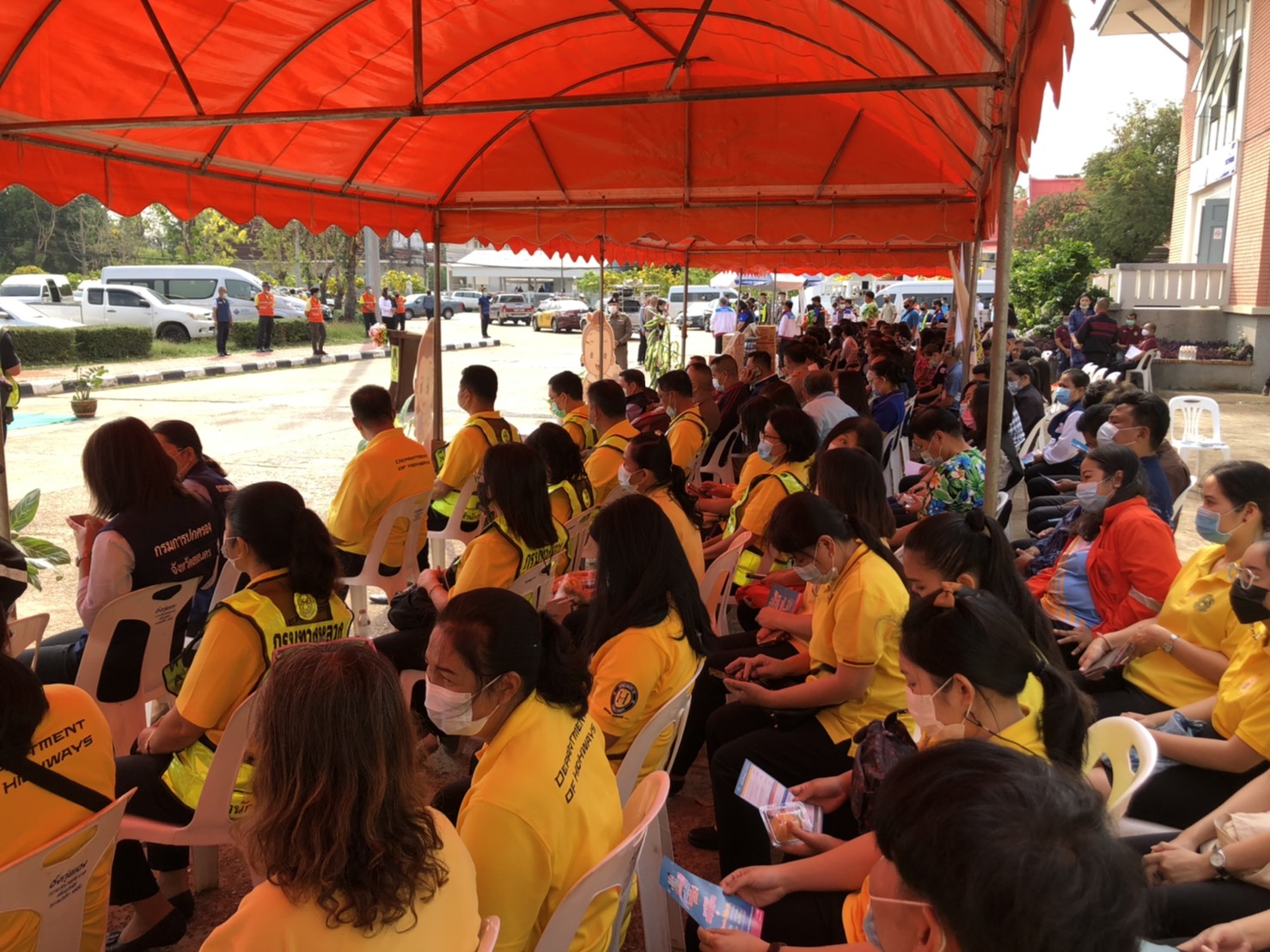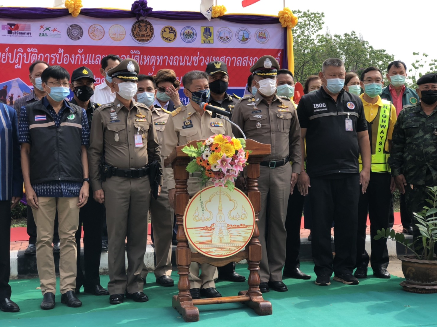 วันที่ 9 เมษายน 2564 เวลา09.00น.หน่วยงานสังกัดกรมทางหลวง กระทรวงคมนาคม ในพื้นที่จังหวัดสกลนคร นำโดยนายพัลลภ จันทร์งามปภากูล ผู้อำนวยการสำนักงานทางหลวงที่ 3 พร้อมด้วยนายประสิทธิ์สาขา ผู้อำนวยการแขวงทางหลวงสกลนครที่1 ,นายสนธยา พลเยี่ยม รองผู้อำนวยการแขวงทางหลวงสกลนครที่1(ฝ่ายวิศวกรรม) ,นายธนพร สีบุญ รองผู้อำนวยการแขวงทางหลวงสกลนครที่1(ฝ่ายปฎิบัติการ) ,นายเฉลิมศักดิ์ ปัญญาประชุม รองผู้อำนวยการแขวงทางหลวงสกลนครที่2(ฝ่ายวิศวกรรม) ,นายภมร ทับทิมทอง รองผู้อำนวยการแขวงทางหลวงสกลนครที่2(ฝ่ายปฎิบัติการ) และหัวหน้าหมวดทางหลวงในสังกัดแขวงทางหลวงสกลนครที่ 1,แขวงทางหลวงสกลนครที่ 2 (สว่างแดนดิน) เข้าร่วมพิธีเปิดศูนย์ปฎิบัติการป้องกันและลดอุบัติเหตุทางถนนช่วงเทศกาลสงกรานต์ 2564 จังหวัดสกลนคร ณ ศาลากลางจังสกลนคร พิธีเปิดศูนย์ปฎิบัติการป้องกันและลดอุบัติเหตุทางถนนช่วงเทศกาลสงกรานต์ 2564 จังหวัดสกลนคร ในครั้งนี้มีนายมนต์สิทธิ์ ไพศาลธนวัฒน์ ผู้ว่าราชการจังหวัดสกลนคร เป็นประธาน