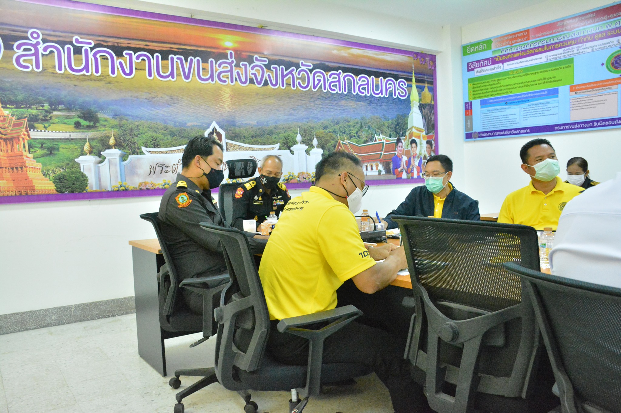 วันที่ 9 เมษายน 2564 เวลา 11.00 น. นายพัลลภ จันทร์งามปภากูล ผู้อำนวยการสำนักงานทางหลวงที่ 3 ,นายประวัติ เสวตวงษ์ รองผู้อำนวยการสำนักงานทางหลวงที่ 3 ,นายประสิทธิ์ สาขา ผู้อำนวยการแขวงทางหลวงสกลนครที่1 เข้าประชุมเรื่อง การมอบนโยบายเพื่อเตรียมความพร้อมในการอำนวยความสะดวกและปลอดภัยเพื่อรองรับการเดินทางของประชาชน ในช่วงเทศกาลสงกรานต์ พ.ศ.2564 โดยการประชุมทางไกลผ่าน (Video Conference) เป็นรายภาค ณ ห้องราชดำเนิน โดยมี นายสรพงศ์ ไพฑูรย์พงษ์ รองปลัดกระทรวงคมนาคม เป็นประธาน ในการประชุมครั้งนี้