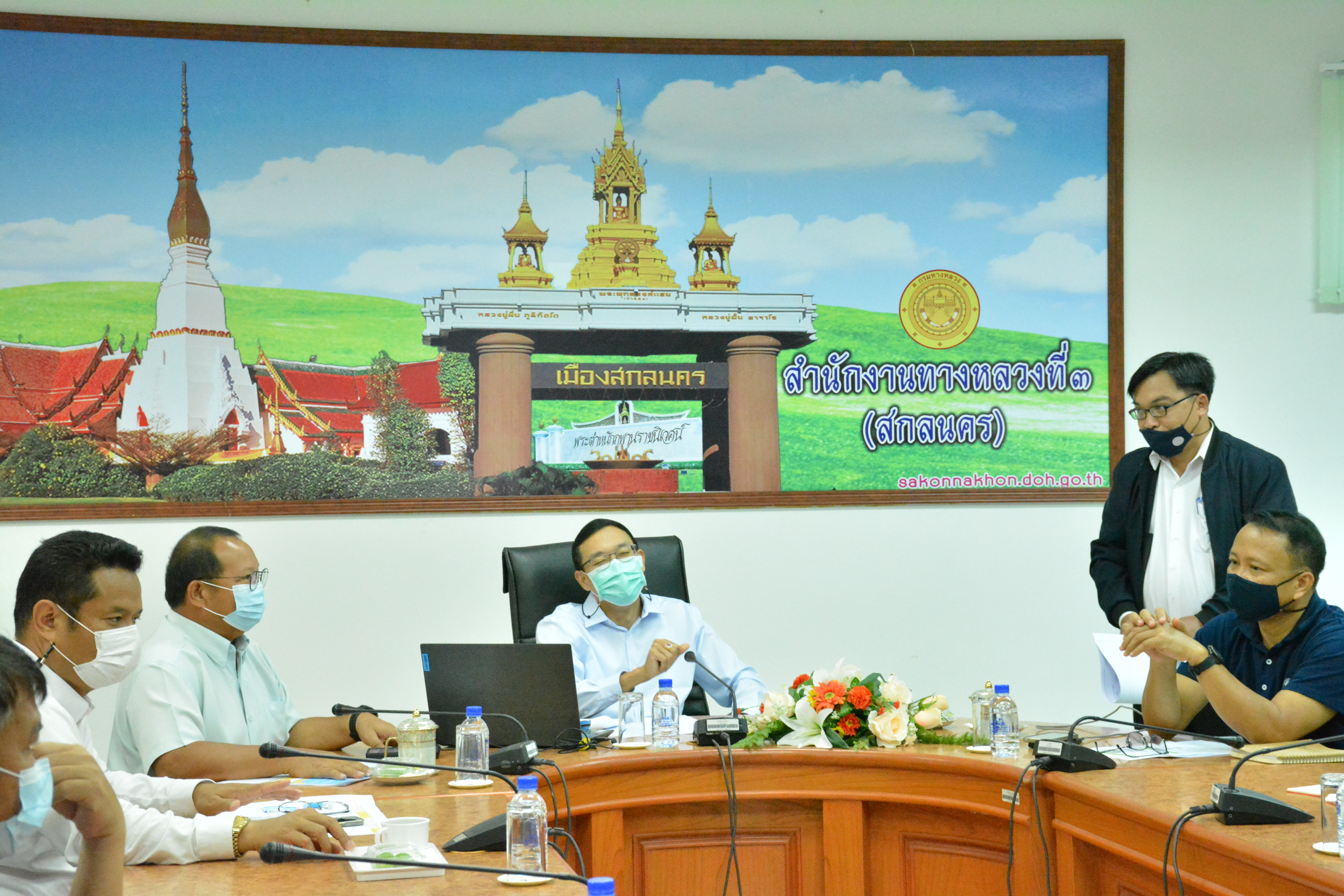 วันที่ 28 พฤษภาคม 2564 เวลา 10.00 น. ณ ห้องประชุมสำนักงานทางหลวงที่ 3 (สกลนคร) อาคารหลังใหม่ นายพัลลภ จันทร์งามปภากูล ผู้อำนวยการสำนักงานทางหลวงที่ 3 พร้อมด้วยนายวุฒิพงศ์ คำภูแสน รองผู้อำนวยการสำนักงานทางหลวงที่ 3 ตำแหน่งที่1 ,นายประวัติ เสวตวงษ์ รองผู้อำนวยการสำนักงานทางหลวงที่ 3 ตำแหน่งที่2 ,นายประสิทธิ สาขา ผู้อำนวยการแขวงทางหลวงสกลนครที่1 ,นายวิชาญ ผิวดำ ผู้อำนวยการแขวงทางหลวงสกลนครที่2 (สว่างแดนดิน) ,นายเดชา พรวนพิทักษ์ ผู้อำนวยการแขวงทางหลวงนครพนม ,นายสนธยา พลเยี่ยม รองผู้อำนวยการแขวงทางหลวงสกลนครที่1 (ฝ่ายวิศวกรรม) ,ผู้อำนวยการส่วน/เจ้าหน้าที่ส่วนแผนงาน ร่วมประชุมทางไกลผ่านระบบ Application Zoom จากห้องประชุมมนัสคอวนิช ชั้น2 อาคารพหลโยธิน กรมทางหลวง ประชุมเรื่องสรุปประเด็นปัญหาในพื้นที่ สำนักงานทางหลวง/แขวงทางหลวง ทั่วประเทศเพื่อเตรียมความพร้อมในการอภิปรายงบประมาณ ปี2565 โดยมีนายสราวุธ ทรงศิวิไล อธิบดีกรมทางหลวง เป็นประธาน ประชุมทางไกลผ่านระบบ Application Zoom ครั้งนี้มีหน่วยงานในสังกัดกรมทางหลวงทั้ง 18 สำนักงานทางหลวงเข้าร่วมประชุม