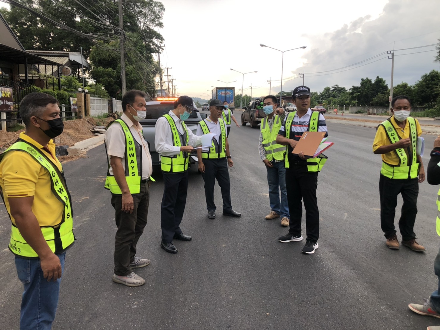 วันที่ 24 มิถุนายน 2564 เวลา14.45น. นายพัลลภ จันทร์งามปภากูล ผู้อำนวยการสำนักงานทางหลวงที่ 3 ประธานกรรมการตรวจรับพัสดุ พร้อมด้วยนายประสิทธิ์ สาขา ผู้อำนวยการแขวงทางหลวงสกลนครที่ 1 กรรมการตรวจรับพัสดุ และคณะกรรมการตรวจรับพัสดุ ลงพื้นที่ดูงานโครงการก่อสร้างทางหลวงสัญญาที่ สน.34/2564 งานจ้างเหมาทำการบูรณาการพัฒนาพื้นที่ระดับภาคทางหลวงหมายเลข 213 สาย สร้างค้อ – สกลนคร ระหว่าง กม.160+500 - กม.162+500 และกม.166+370-กม.167+995 ปริมาณงาน 1 แห่ง วงเงินงบประมาณ 68,506,000 บาท (ตรวจรับงานงวดที่2) เพื่อให้การดำเนินงานก่อสร้างทางหลวงแผ่นดินได้ตามแบบมาตรฐานของกรมทางหลวง กระทรวงคมนาคม โดยมีห้างหุ้นส่วน ศิริสินก่อสร้าง เป็นผู้รับจ้าง