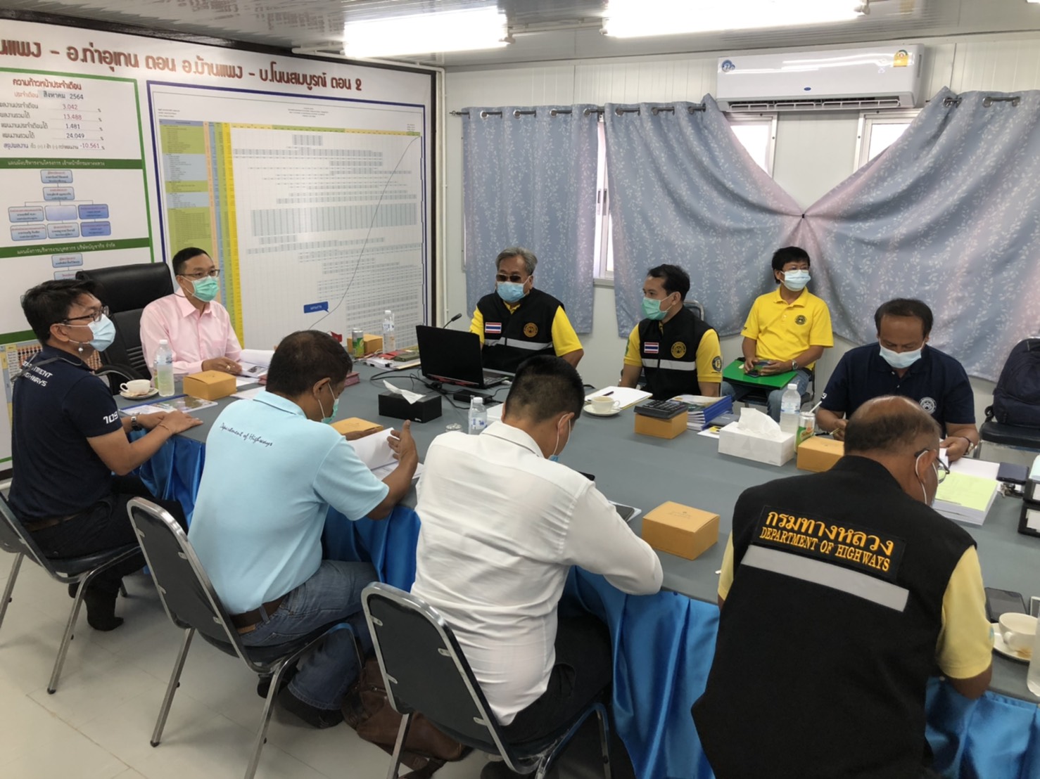 วันที่ 31 สิงหาคม 2564 เวลา10.30น. นายพัลลภ จันทร์งามปภากูล ผู้อำนวยการสำนักงานทางหลวงที่ 3 กรรมการตรวจรับพัสดุ พร้อมด้วยคณะกรรมการตรวจรับพัสดุ ลงพื้นที่ดูงานโครงการก่อสร้างทางหลวงหมายเลข 212สาย บ้านแพง - อ.ท่าอุเทน ตอน2ระหว่าง กม.237+000 - กม.242+550 และกม.247+875 – กม.255+000 ระยะทางรวม 12.675 กม. วงเงินงบประมาณ 610,504,000 บาท (ตรวจรับงานงวดที่3) เพื่อให้การดำเนินงานก่อสร้างทางหลวงแผ่นดินได้ตามแบบมาตรฐานของกรมทางหลวง กระทรวงคมนาคม มีบริษัท บัญชากิจ จำกัด เป็นผู้รับจ้าง ควบคุมงานก่อสร้างโดยสำนักก่อสร้างทางที่ 2 กรมทางหลวง พร้อมรับฟังบรรยายสรุปผลการดำเนินงานของโครงการฯ ณ ห้องประชุมสำนักงานชั่วคราวของโครงการฯ ส่วนนายสิทธิชัย บุญสะอาด วิศวกรใหญ่ด้านสำรวจและออกแบบ ประธานกรรมการตรวจรับพัสดุ ร่วมตรวจรับงานงวดที่ 3 ผ่านระบบ ZOOM Cloud Meetings
