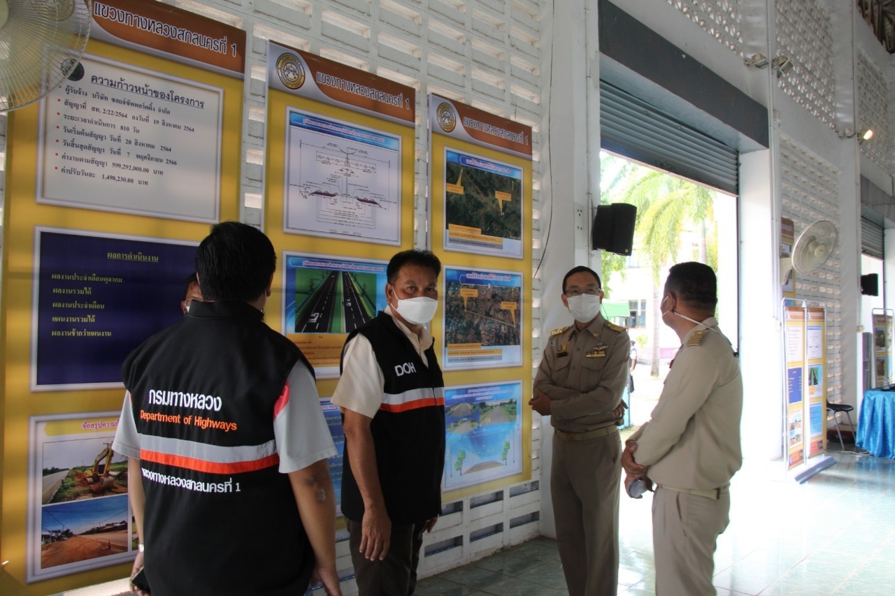 วันที่ 28ตุลาคม -29 ตุลาคม 2564 นายพัลลภ จันทร์งามปภากูล ผู้อำนวยการสำนักงานทางหลวงที่ 3 พร้อมด้วยนายประสิทธิ์ สาขาผู้อำนวยการแขวงทางหลวงสกลนครที่ 1 และนายอำพร สีบุญ รองผู้อำนวยการแขวงทางหลวงสกลนครที่ 1 ร่วมต้อนรับนายทรงศักดิ์ ทองศรี รัฐมนตรีช่วยว่าการกระทรวงมหาดไทย และคณะ เนื่องโอกาสลงพื้นที่ตรวจราชการจังหวัดสกลนครและจังหวัดบึงกาฬ ของหน่วยงานภายใต้การกำกับดูแล ได้แก่กรมโยธาธิการและผังเมือง กรมการพัฒนาชุมชน และการประปาส่วนภูมิภาค พร้อมรับฟังความเห็นของประชาชาชน วันที่28ตุลาคม 2564 เวลา16.20 น. นายทรงศักดิ์ ทองศรี รัฐมนตรีช่วยว่าการกระทรวงมหาดไทย และคณะ ลงพื้นที่โครงการขยายถนนสี่เลน สาย223 อำเภอโคกศรีสุพรรณ จังหวัดสกลนคร –อำเภอนาแก จังหวัดนครพนม นายพัลลภ จันทร์งามปภากูล ผู้อำนวยการสำนักงานทางหลวงที่ 3 ได้นำเสนอรูปแบบการก่อสร้าง และรายงานความคืบหน้าของโครงการฯ แก่ท่านรัฐมนตรีช่วยว่าการกระทรวงมหาดไทย และวันที่29 ตุลาคม 2564 เวลา09.00 น. นายทรงศักดิ์ ทองศรี รัฐมนตรีช่วยว่าการกระทรวงมหาดไทย และคณะ ลงพื้นที่โครงการขยายถนนสี่เลน สาย2339 เต่าง่อย – ศรีวิชา จังหวัดสกลนคร นายพัลลภ จันทร์งามปภากูล ผู้อำนวยการสำนักงานทางหลวงที่ 3 ได้นำเสนอรูปแบบการก่อสร้างของโครงการขยายถนน สาย2339 เต่าง่อย – ศรีวิชา ซึ่งจะได้รับงบประมาณปี 2565 ในการดำเนินงานก่อสร้าง แก่ท่านรัฐมนตรีช่วยว่าการกระทรวงมหาดไทย