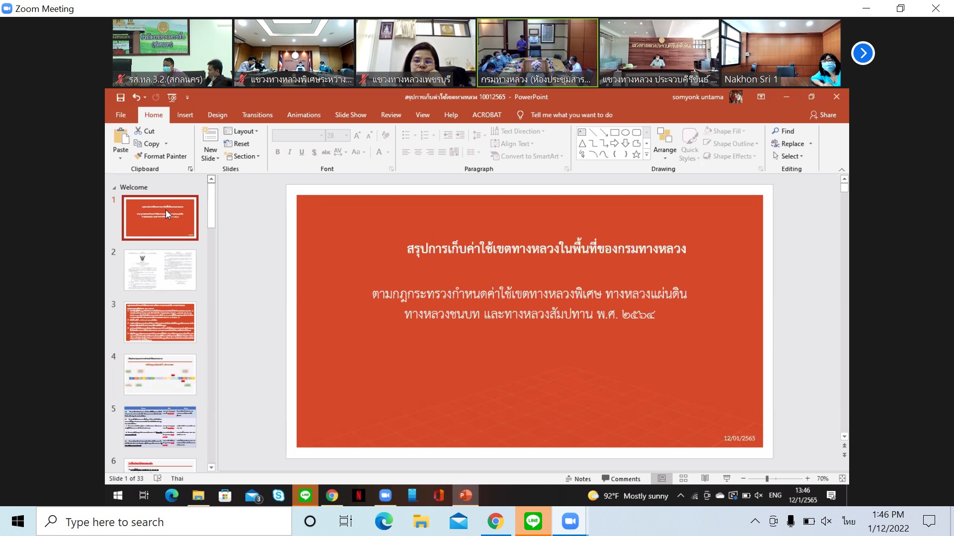 วันที่ 12 มกราคม 2564 ณ ห้องประชุมสำนักงานทางหลวงที่ 3 (สกลนคร) อาคารหลังใหม่ เวลา 13.30 น. นายพัลลภ จันทร์งามปภากูล ผู้อำนวยการสำนักงานทางหลวงที่ 3 พร้อมด้วย นายวุฒิพงศ์ คำภูแสน รองผู้อำนวยการสำนักงานทางหลวงที่ 3 ตำแหน่งที่1 นายประวัติ เสวตวงษ์ รองผู้อำนวยการสำนักงานทางหลวงที่ 3 ตำแหน่งที่2 นายพัฒนา ไตรโยธี ผู้อำนวยส่วนอำนวยความปลอดภัย นายหนูกาญ เจริญไชย ผู้อำนวยส่วนกฎหมายและกรรมสิทธิ์ที่ดิน นายผดุง ศรีโคตา วิศวกรโยธาส่วนแผนงาน เจ้าหน้าที่ส่วนอำนวยความปลอดภัย และเจ้าหน้าที่ส่วนกฎหมายและกรรมสิทธิ์ที่ดิน เข้าร่วมประชุมแนวทางปฏิบัติติตามกฎกระทรวงค่าใช้เขตทางหลวงพิเศษ ทางหลวงแผ่นดิน ทางหลวงชนบท และทางหลวงสัมปทาน 2564 โดยผ่านระบบ Zoom Cloud Meeting จากห้องประชุมสารศาสตร์ศิริลักษณ์ อาคารพลหโยธิน กรมทางหลวง มีนายมนตรี เดชาสกุลสม รองอธิบดีกรมทางหลวง เป็นประธาน
