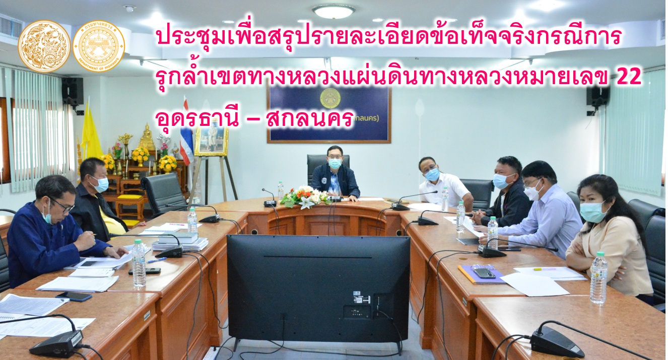 วันที่ 21 มกราคม 2565 เวลา 09.00 น. นายพัลลภ จันทร์งามปภากูล ผู้อำนวยการสำนักงานทางหลวงที่ 3 เป็นประธาน ประชุมเพื่อสรุปรายละเอียดข้อเท็จจริงกรณีการรุกล้ำเขตทางหลวงแผ่นดินทางหลวงหมายเลข 22 อุดรธานี – สกลนคร มีนายประวัติ เสวตวงษ์ รองผู้อำนวยการสำนักงานทางหลวงที่ 3 นายวิชาญ ผิวดำ ผู้อำนวยการแขวงทางหลวงสกลนครที่2 (สว่างแดนดิน) นายภมร ทับทิมทอง(รอ.ขท.สกลนครที่ 2 (สว่างแดนดิน) (ป.) นางไพรพรรณ เทืองกอง (รอ.ขท.สกลนครที่ 2 (สว่างแดนดิน) (บ.) หนูกาญ เจริญไชย ผู้อำนวยการส่วนกฎหมายและกรรมสิทธิ์ที่ดิน นางนภาพิศ สุวรรณศรี ผู้อำนวยการส่วนบริหารงานทั่วไป นายธีรวัฒน์ มีสัจจะธรรม เป็นหัวหน้าหมวดทางหลวงพังโคน และนายวีรวัตน์ บุ่งนาแซง นิตกรปฏิบัติการ ส่วนกฎหมายและกรรมสิทธิ์ที่ดิน ร่วมประชุม ณ ห้องประชุมทวีพัฒน์ ตินะมาส สำนักงานทางหลวงที่ 3 (สกลนคร)