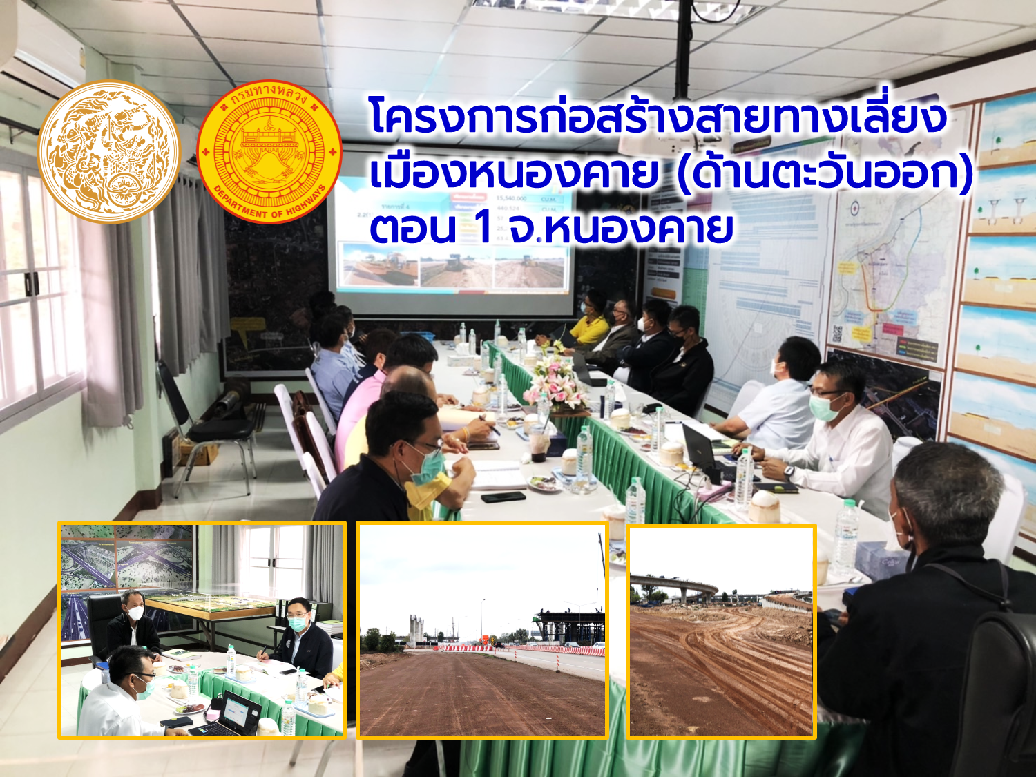 วันที่ 17 กุมภาพันธ์ 2565 เวลา15.00 นายอภิสิทธิ์ พรหมเสน รองอธิบดีกรมทางหลวง ประธานกรรมการตรวจรับพัสดุ พร้อมด้วยนายพัลลภ จันทร์งามปภากูล ผู้อำนวยการสำนักงานทางหลวงที่ 3 กรรมการตรวจรับพัสดุ และคณะกรรมการตรวจรับพัสดุ ลงพื้นที่ดูงานงานโครงการก่อสร้างสายทางเลี่ยงเมืองหนองคาย (ด้านตะวันออก) ตอน 1 จ.หนองคาย บนทางหลวงหมายเลข 2 ระหว่าง กม.502+000 - กม.507+750 ระยะทางรวม 5.750 กม. วงเงินงบประมาณ 1,544,634,300บาท (ตรวจรับงานงวดที่ 12)โดยมี บริษัท ซิโน-ไทย เอ็นจีเนียริ่ง แอนด์ คอนสตรัคชั่น จำกัด(มหาชน) เป็นผู้รับจ้าง เพื่อให้ได้ตามแบบมาตรฐานก่อสร้างทางหลวงแผ่นดินของกรมทางหลวง กระทรวงคมนาคม พร้อมรับฟังบรรยายสรุปผลการดำเนินงานของโครงการฯ ณ สำนักงานชั่วคราวของโครงการฯ ควบคุมการก่อสร้างโดยสำนักก่อสร้างที่ 2 กรมทางหลวง