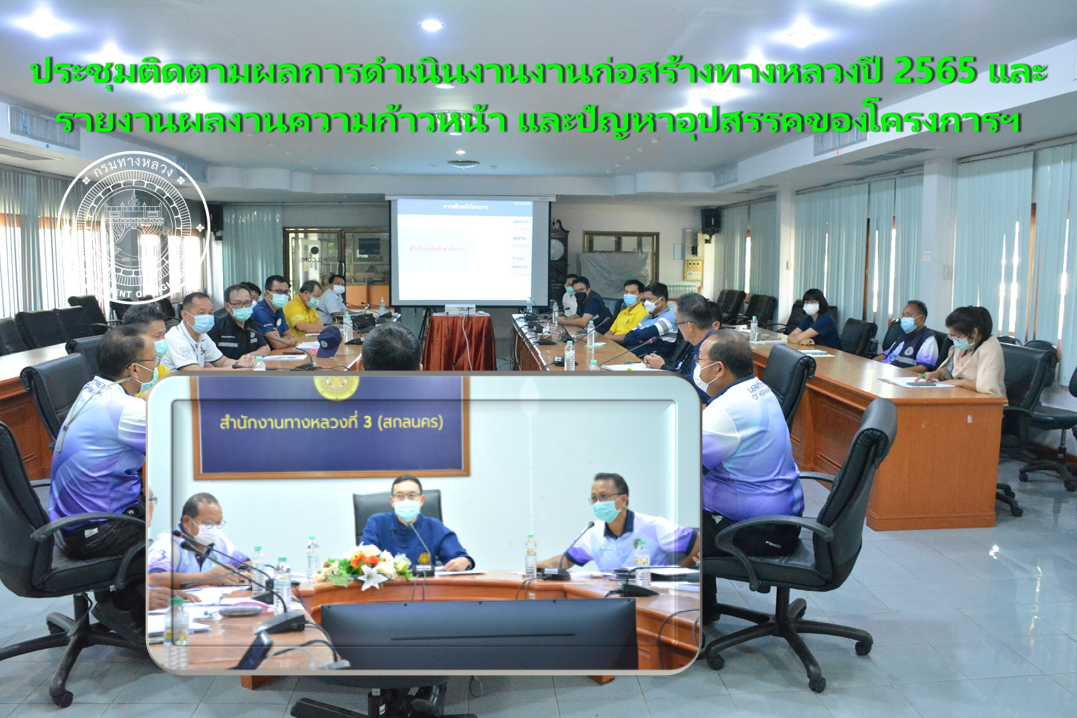 วันที่ 23 กุมภาพันธ์ 2565 เวลา 09.30 น. นายพัลลภ จันทร์งามปภากูล ผู้อำนวยการสำนักงานทางหลวงที่ 3 เป็นประธาน ประชุมติดตามผลการดำเนินงานก่อสร้างทางหลวงปี 2565 ของส่วนควบคุมงานก่อสร้างและส่วนตรวจสอบและวิแคราะห์ทางวิศวกรรม ประจำเดือนมีนาคม 2565 มีนายวุฒิพงศ์ คำภูแสน รองผู้อำนวยการสำนักงานทางหลวงที่ 3 ตำแหน่งที่1 นายประวัติ เสวตวงษ์ รองผู้อำนวยการสำนักงานทางหลวงที่ 3 ตำแหน่งที่2 นางนภาพิศ สุวรรณศรี ผู้อำนวยการส่วนบริหารงานทั่วไป นายรณฤทธิ์ ภูผิวเดือน ผู้อำนวยการส่วนควบคุมการก่อสร้าง นายเรืองฤทธิ์ ทิพย์วังเมฆ ผู้อำนวยการส่วนตรวจสอบและวิเคราะห์ทางวิศวกรรม นายพัฒนา ไตรโยธี ผู้อำนวยการส่วนอำนวยความปลอดภัย และวิศวกรโยธา นายช่างโยธา ของส่วนควบคุมการก่อสร้าง และส่วนตรวจสอบและวิเคราะห์ทางวิศวกรรม เข้าร่วมประชุมและรายงานผลงานความก้าวหน้า และปัญหาอุปสรรคของโครงการก่อสร้างฯ ณ ห้องประชุมทวีพัฒน์ ตินะมาส