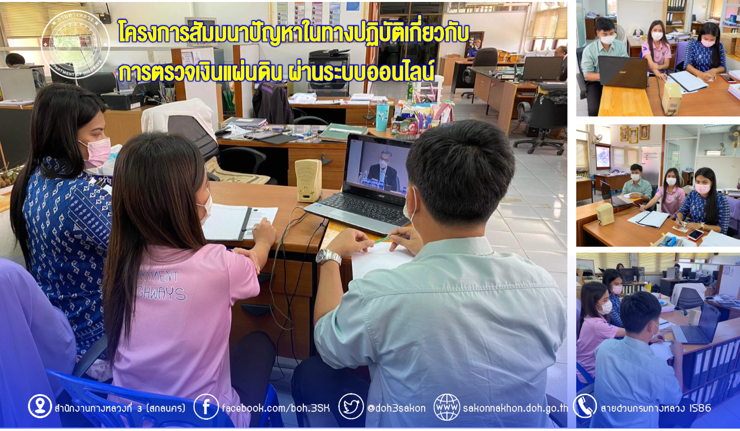 วันที่ 4 สิงหาคม 2565 เวลา 13.00น.-16.30น. สำนักงานทางหลวงที่ 3 (สกลนคร) โดยเจ้าหน้าที่ส่วนกฎหมายและกรรมสิทธิ์ที่ดิน ร่วมสัมมนาทวิภาคีระหว่างศาลปกครอง กับคณะกรรมการตรวจเงินแผ่นดิน หัวข้อปัญหาในทางปฏิบัติเกี่ยวกับการตรวจเงินแผ่นดิน ผ่านระบบออนไลน์ Facebook live ทาง Facebook สำนักงานศาลปกครอง โดยมีวิทยากรจากศาลปกครอง และคณะกรรมการตรวจเงินแผ่นดิน บรรยายให้ความรู้แก่ผู้ที่เข้าร่วมสัมมนาในครั้งนี้