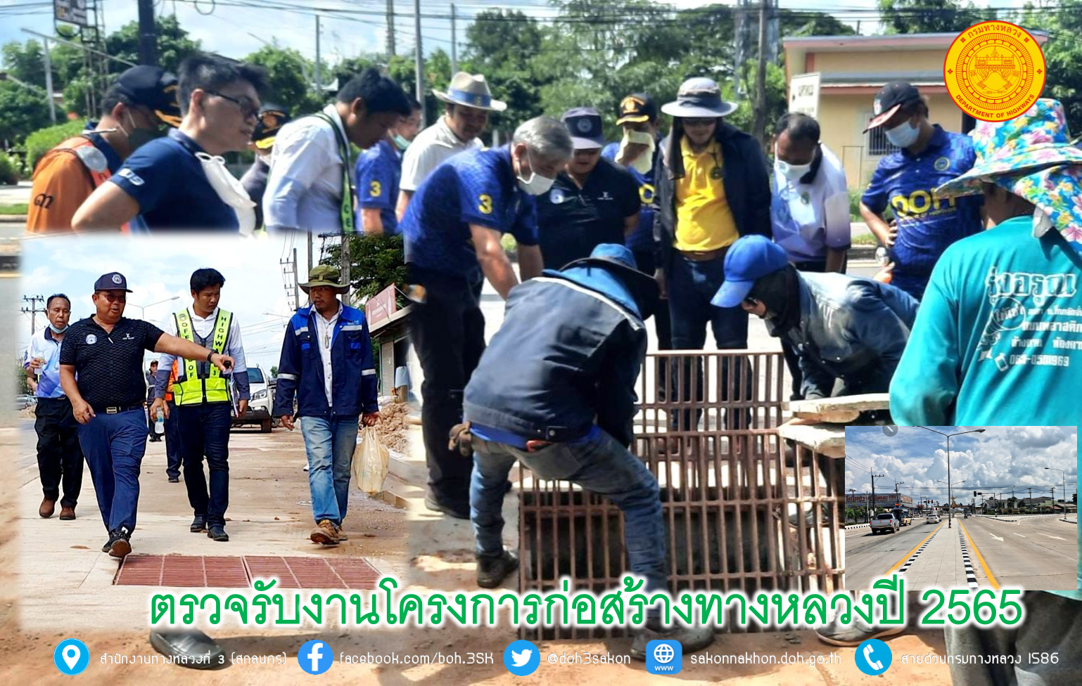 วันที่ 31 สิงหาคม 2565 นายวุฒิพงศ์ คำภูแสน รองผู้อำนวยการสำนักงานทางหลวงที่ 3 ประธานกรรมการตรวจรับพัสดุ พร้อมด้วยคณะกรรมการตรวจรับพัสดุ ลงพื้นที่ตรวจรับงานของโครงการก่อสร้างทางหลวงปี 2565
