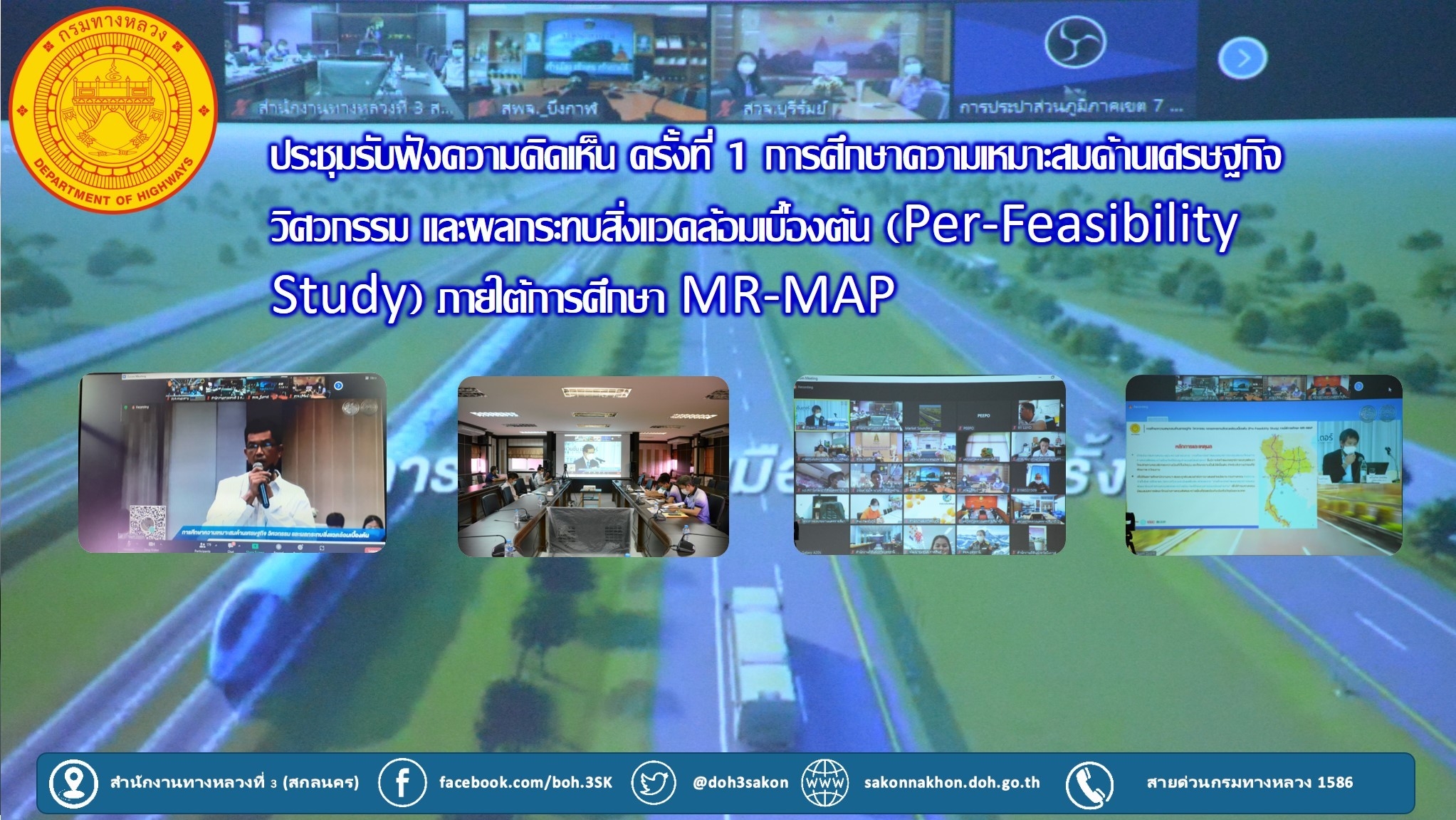วันที่ 6 ตุลาคม 2565 เวลา 09.30 น.นายชินนพัทธ์ มุลทาทอง ผู้อำนวยการส่วนแผนงาน พร้อมด้วยวิศวกรโยธา นายช่างโยธา ส่วนแผนงาน เข้าร่วมการประชุมรับฟังความคิดเห็น ครั้งที่ 1 การศึกษาความเหมาะสมด้านเศรษฐกิจ วิศวกรรมและผลกระทบสิ่งแวดล้อมเบื้องต้น (Pre-Feasibility) ภาตใต้การศึกษา MR-MAP ในพื้นที่ภาคตะวันออกเฉียงเหนือ 1 โดยผ่านระบบ Zoom Cloud Meeting จาก ห้องประชุม 1-3 ชั้น 2 อวานี ขอนแก่น โฮเทล แอนด์ คอนเวนเซ็นเตอร์ จังหวัดขอนแก่น