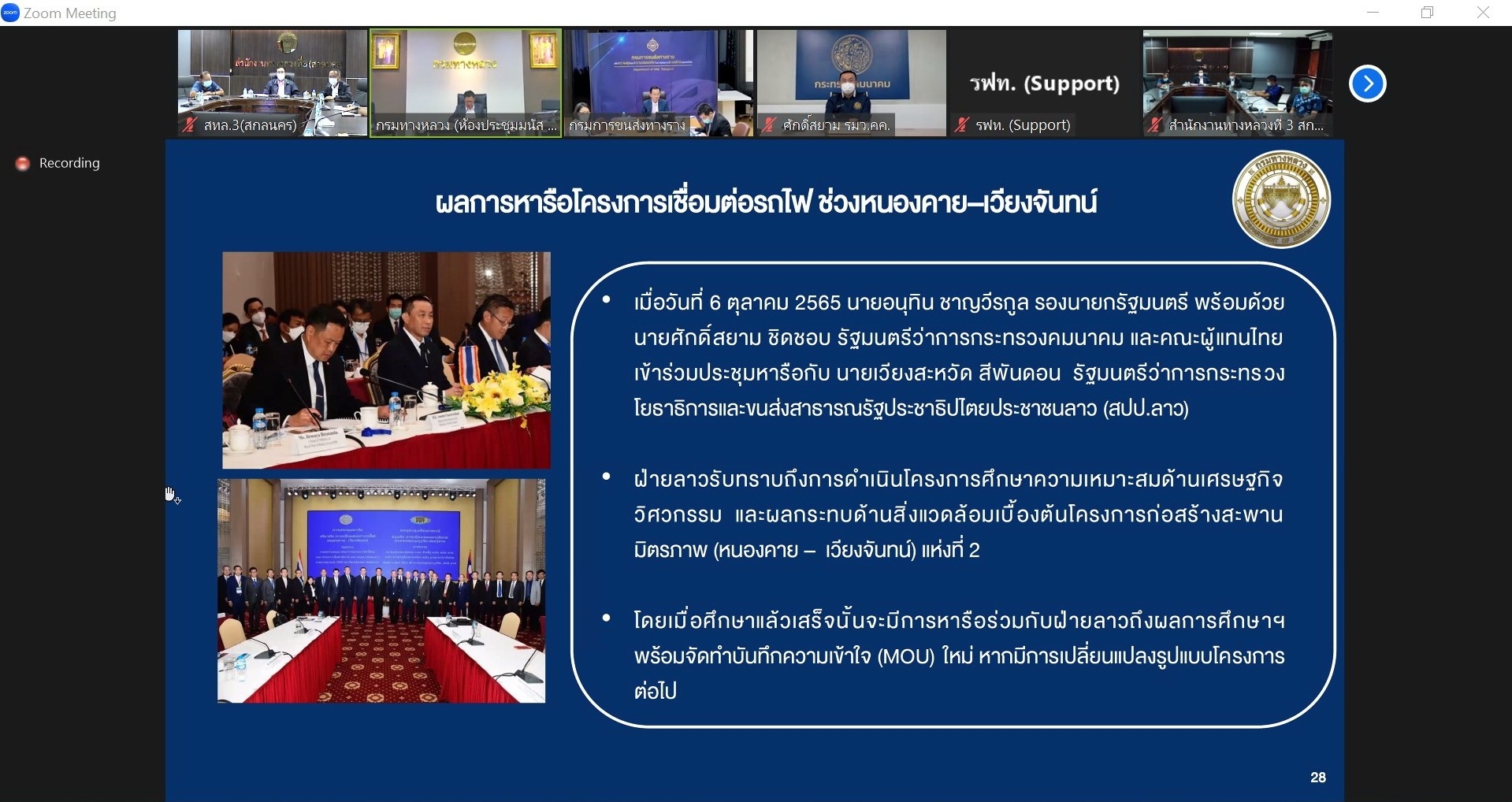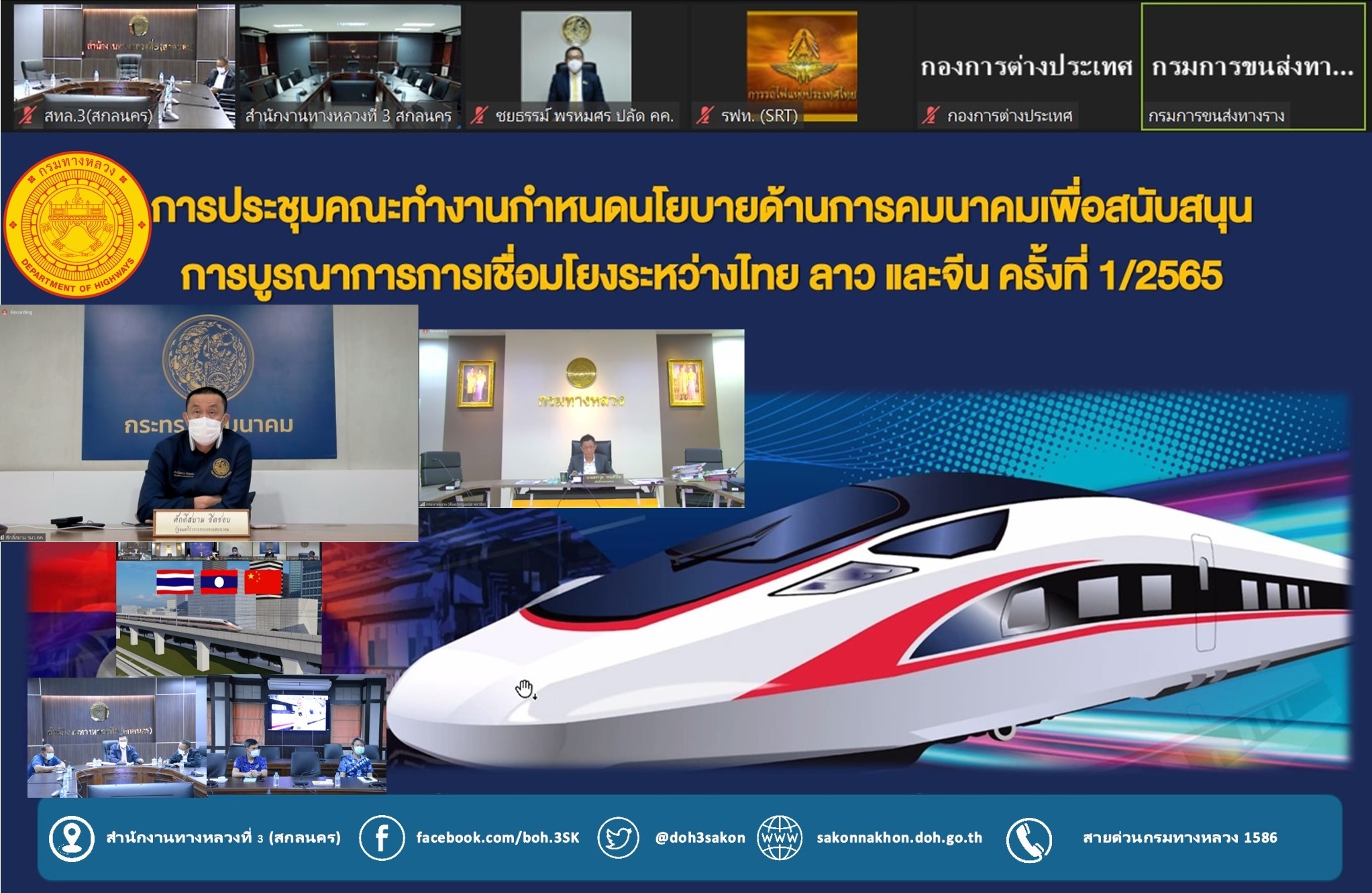 ประชุมคณะทำงานกำหนดนโยบายด้านการคมนาคมเพื่อสนับสนุนการบูรณาการ การเชื่อมโยงระหว่าง ไทย - ลาว - จีน ครั้งที่ 1/2565