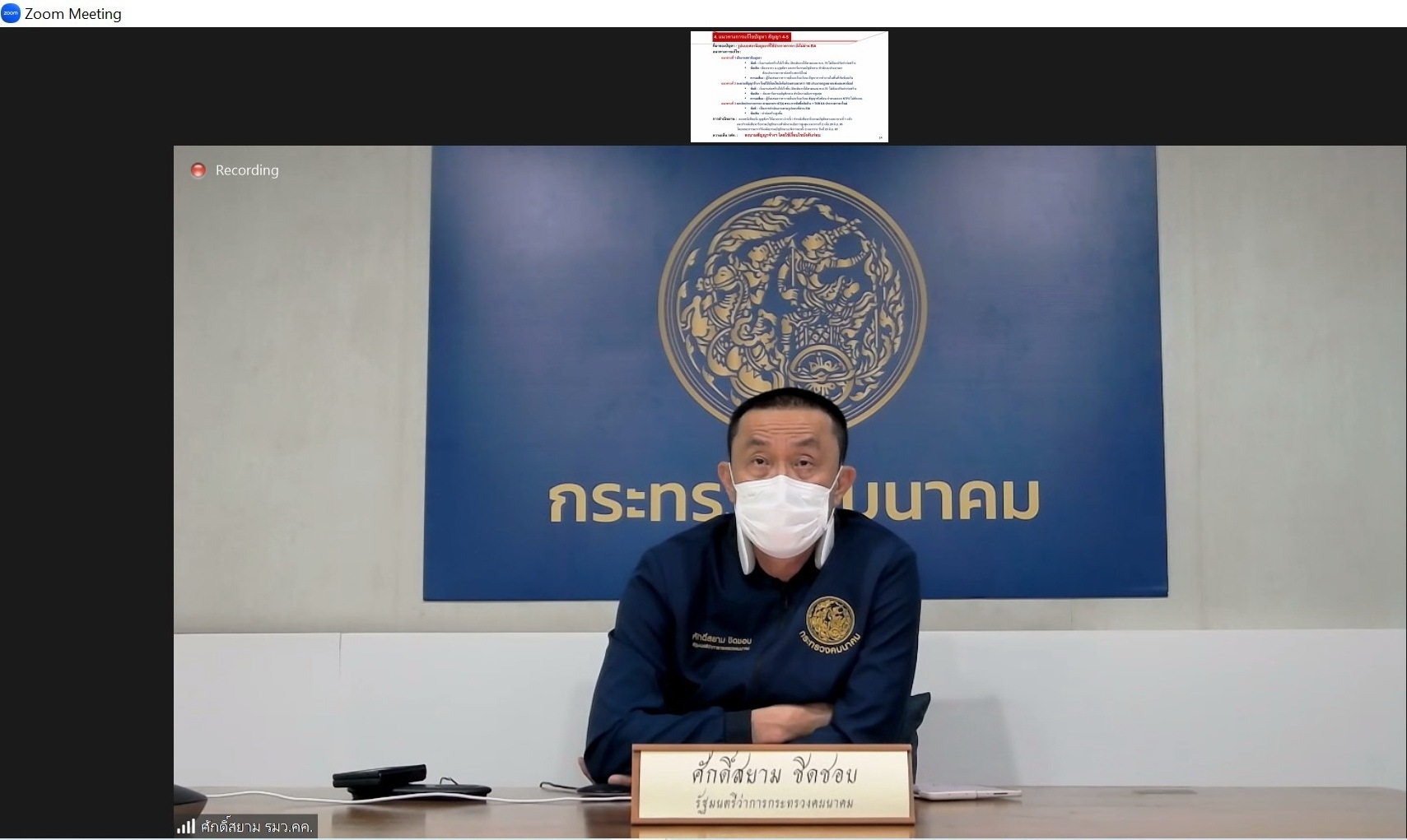 ครั้งที่ 1/2565 โดยผ่านระบบ Zoom Cloud Meeting ในการประชุมครั้งนี้มีนายศักดิ์สยาม ชิดชอบ รัฐมนตรีว่าการกระทรวงคมนาคม เป็นประธาน