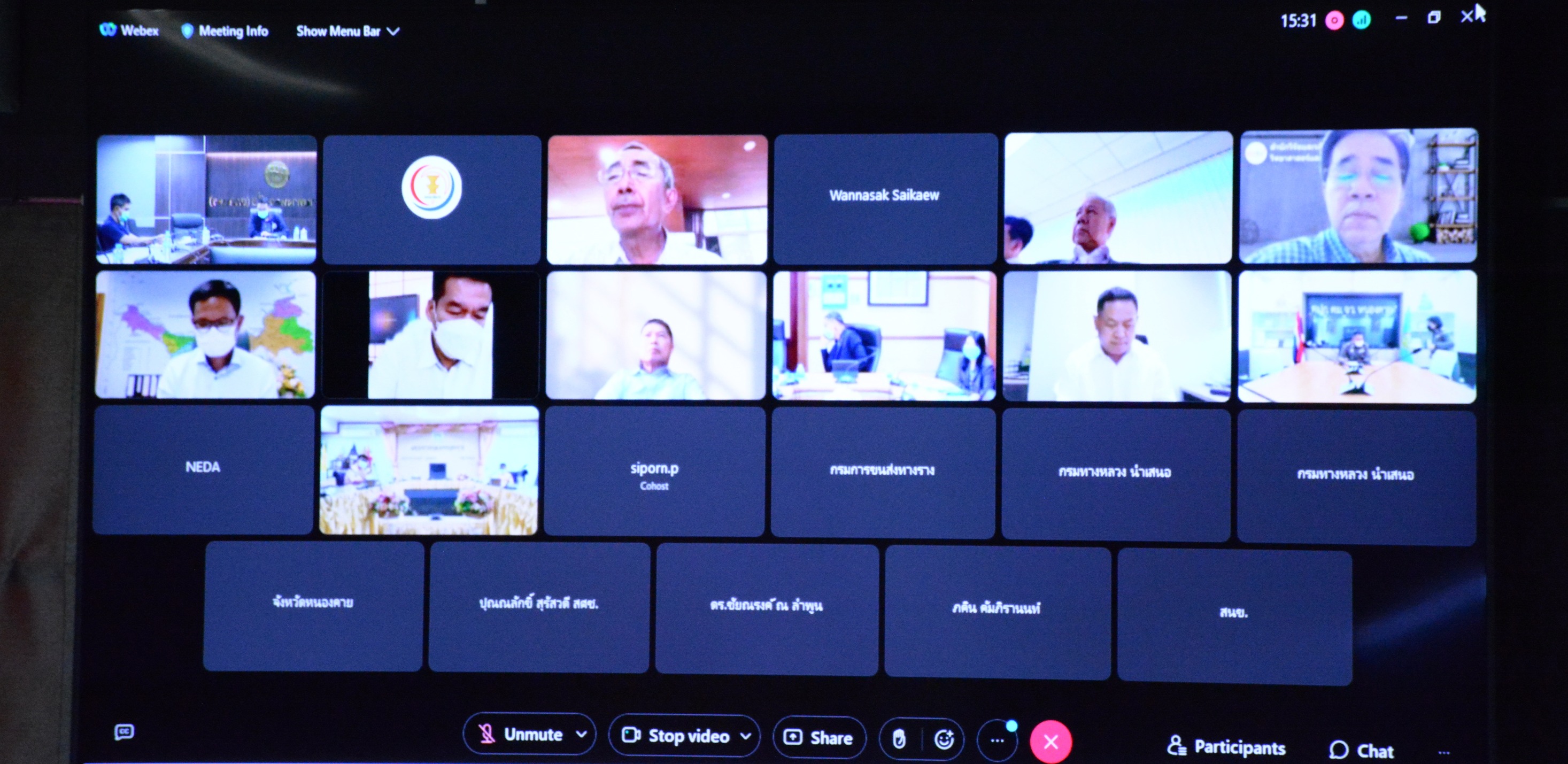 วันที่ 25 ตุลาคม 2565 เวลา 15.00 น. นายพัลลภ จันทร์งามปภากูล ผู้อำนวยการสำนักงานทางหลวงที่ 3 พร้อมด้วย นายชินนพัทธ์ มุลทาทอง ผู้อำนวยการส่วนแผนงาน ร่วมประชุมคณะทำงานพิจารณาและติดตามการเชื่อมโยงระบบขนส่งทางรางระหว่างจังหวัดหนองคาย - นครหลวงเวียงจันทน์ โดยผ่านระบบ Cisco Webex Meeting ณ ห้องประชุม ทวีพัฒน์ ตินะมาส ชั้น 3 อาคารหลังใหม่
