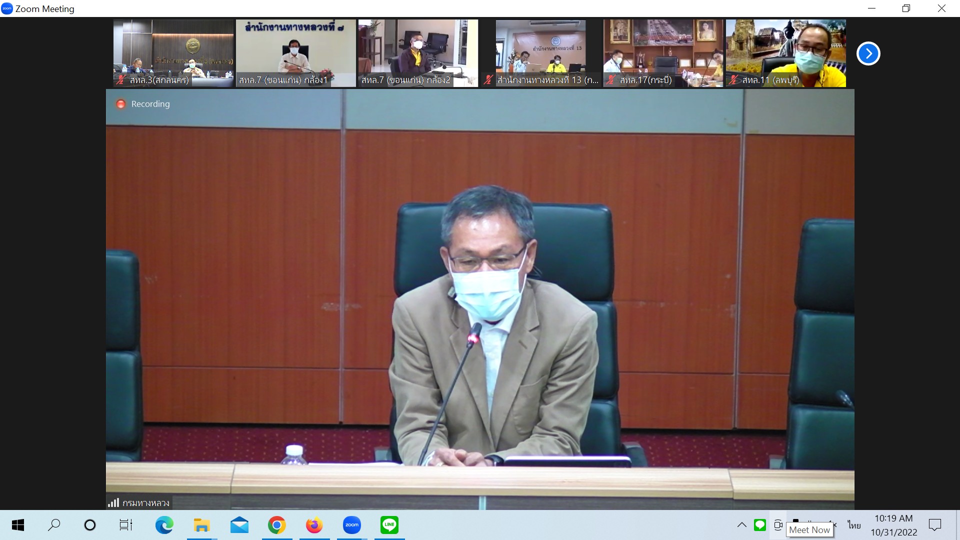 วันที่ 31 ตุลาคม 2565 เวลา 10.00 น. ณ ห้องประชุมทวีพัฒน์ ตินะมาส ชั้น 3 อาคารหลังใหม่ นายพัลลภ จันทร์งามปภากูล ผู้อำนวยการสำนักงานทางหลวงที่ 3 พร้อมด้วย นายวุฒิพงศ์ คำภูแสน รองผู้อำนวยการสำนักงานทางหลวงที่ 3 ตำแหน่งที่ 1 นายประวัติ เสวตวงษ์ รองผู้อำนวยการสำนักงานทางหลวงที่ 3 ตำแหน่งที่ 2 นายชินนพัทธ์ มุลทาทอง ผู้อำนวยการส่วนแผนงาน และวิศวกรโยธา นายช่างโยธา ส่วนแผนงาน ร่วมประชุมหารือ เพื่อหาแนวทางการพิจารณาขอตั้งงบปี 67 งบจังหวัด /กลุ่มจังหวัด โดยผ่านระบบ Zoom Cloud Meeting ของกรมทางหลวง มีนายมนตรี เดชาสกุลสม รองอธิบดีกรมทางหลวง เป็นประธาน ในการประชุมครั้งนี้มีหน่วยงานสังกัดกรมทางหลวง ทั้ง 18 สำนักงานทางหลวง เข้าร่วมประชุมด้วย