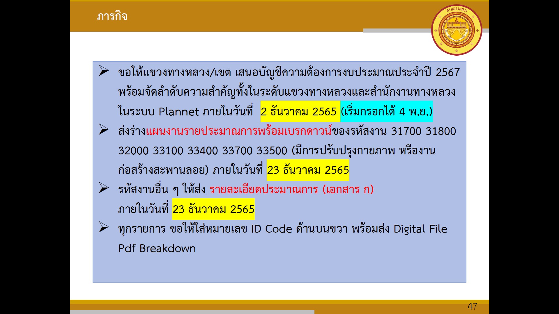 วันที่ 3 พฤศจิกายน 2565 เวลา 10.00 น. ณ ห้องประชุมทวีพัฒน์ ตินะมาส ชั้น 3 อาคารหลังใหม่ นายพัลลภ จันทร์งามปภากูล ผู้อำนวยการสำนักงานทางหลวงที่ 3 พร้อมด้วย นายประวัติ เสวตวงษ์ รองผู้อำนวยการสำนักงานทางหลวงที่ 3 นายชินนพัทธ์ มุลทาทอง ผู้อำนวยการส่วนแผนงาน และวิศวกรโยธา นายช่างโยธา ส่วนแผนงาน ร่วมประชุมเพื่อเตรียมความพร้อมการจัดทำแผนงานอำนวยความปลอดภัยประจำปีงบประมาณ พ.ศ.2567 (สป.) โดยผ่านระบบ Zoom Cloud Meeting ของกรมทางหลวง โดยมีนายสืบพันธ์ ไพศาลวัฒนา ผู้อำนวยการสำนักอำนวยความปลอดภัย เป็นประธาน ในการประชุมครั้งนี้มีหน่วยงานสังกัดกรมทางหลวง ทั้ง 18 สำนักงานทางหลวง เข้าร่วมประชุมด้วย