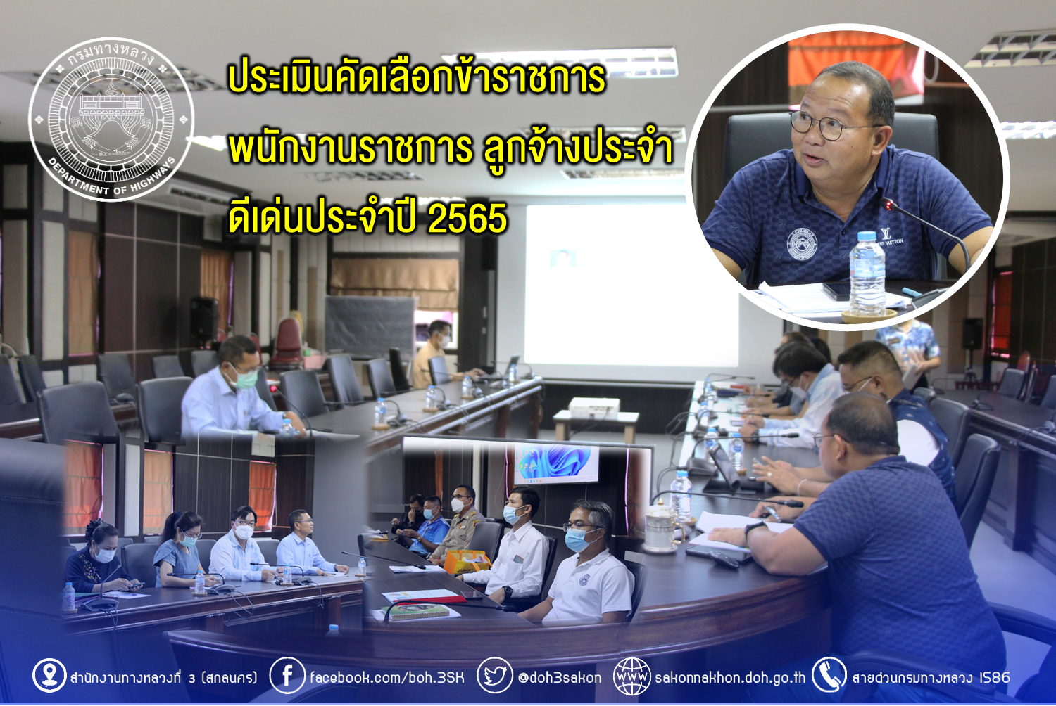สำนักงานทางหลวงที่ 3 (สกลนคร) ดำเนินการคัดเลือกข้าราชการ พนักงานราชการ ลูกจ้างประจำ ดีเด่นประจำปี 2565 ณ ห้องประชุมทวี พัฒน์ตินะมาส สำนักงานทางหลวงที่ 3 (สกลนคร) อาคารหลังใหม่