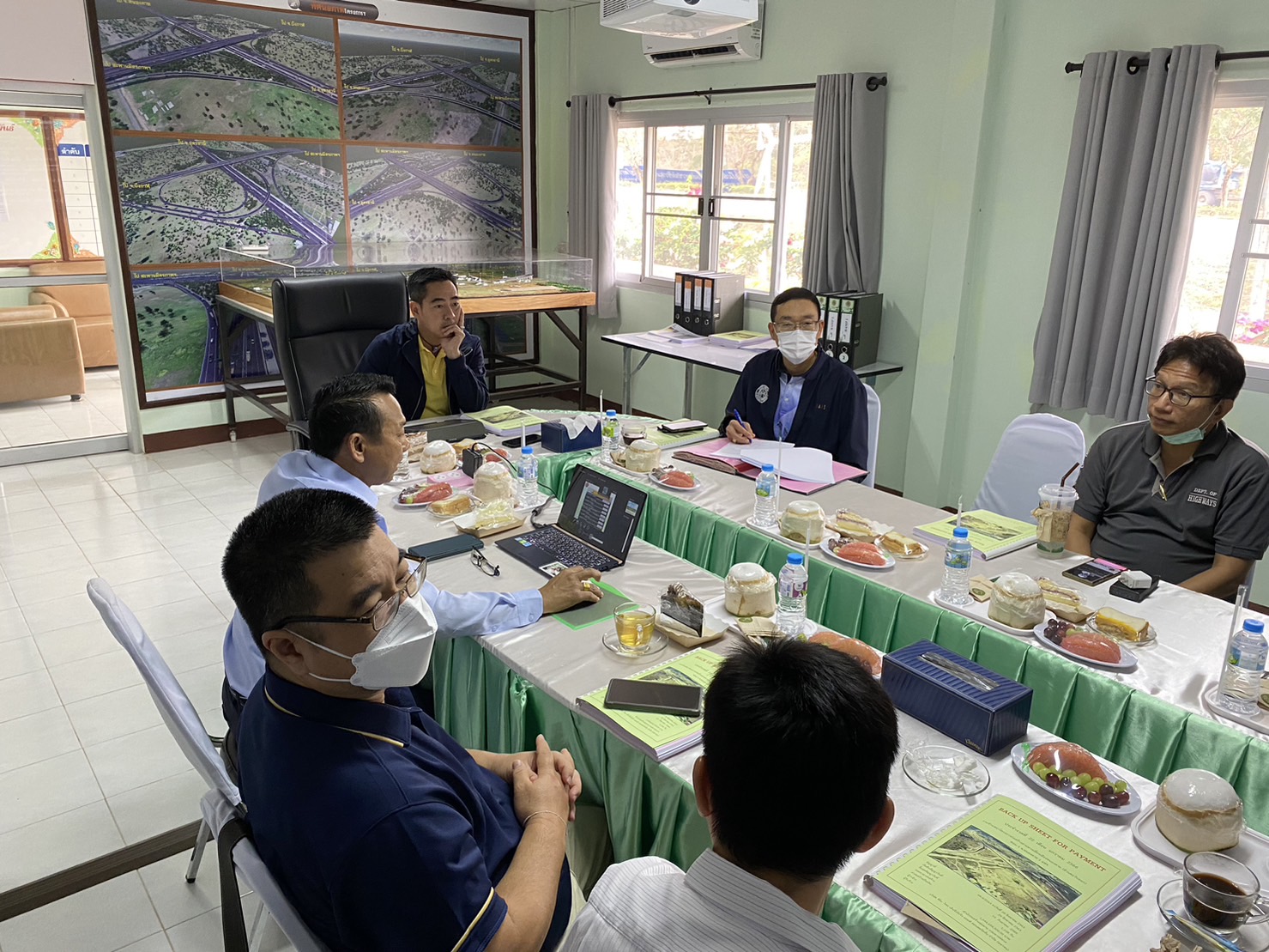 เพื่อให้การดำเนินงานก่อสร้างทางหลวงแผ่นดินได้ตามแบบมาตรฐานของกรมทางหลวง กระทรวงคมนาคม โดยมี บริษัท ซิโน-ไทย เอ็นจีเนียริ่ง แอนด์ คอนสตรัคชั่น จำกัด(มหาชน) เป็นผู้รับจ้าง พร้อมรับฟังบรรยายสรุปผลการดำเนินงานของโครงการฯ ณ ห้องประชุมสำนักงานชั่วคราวของโครงการฯ ควบคุมการก่อสร้างโดยสำนักก่อสร้างทางที่ 2 กรมทางหลวง