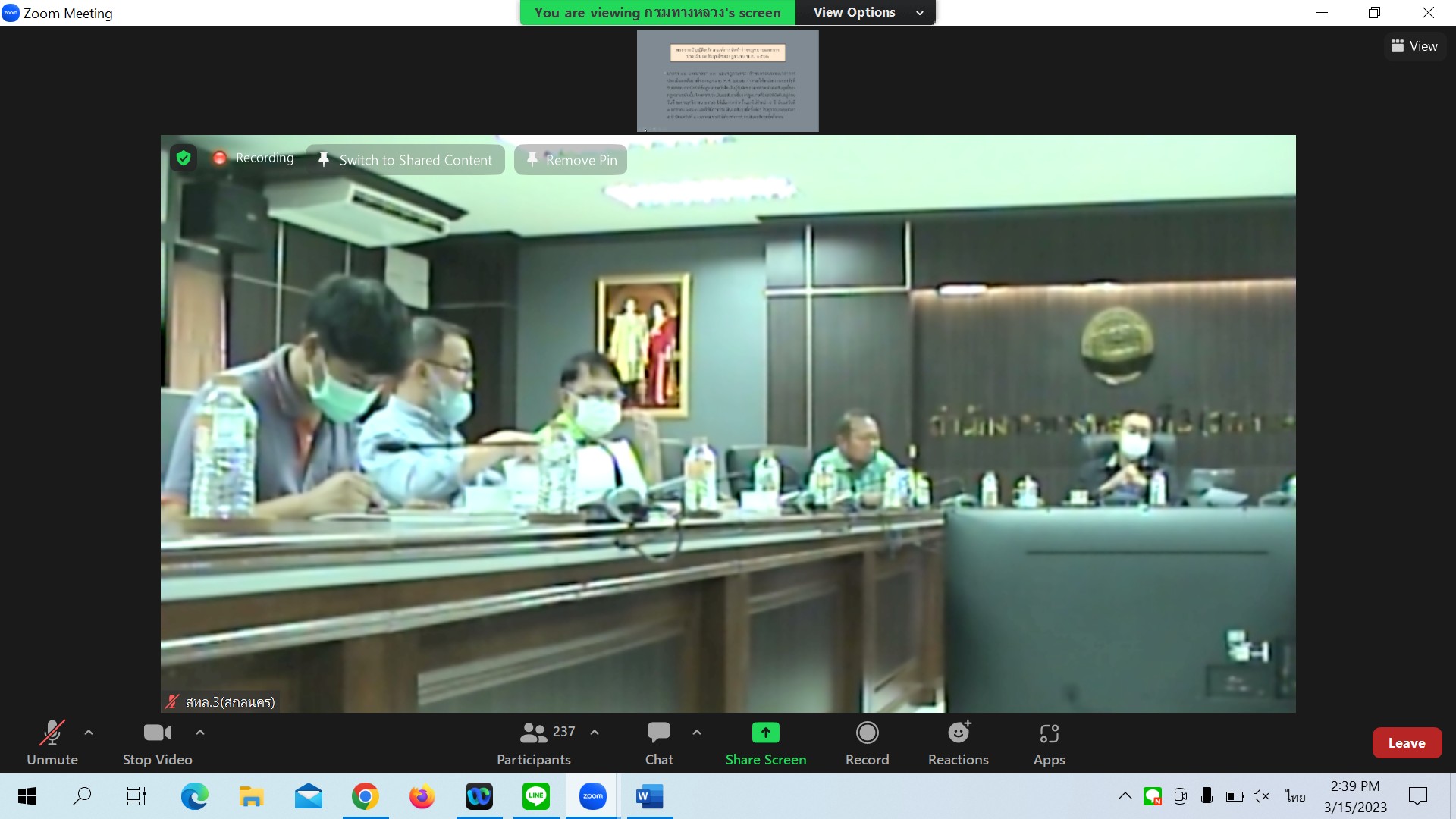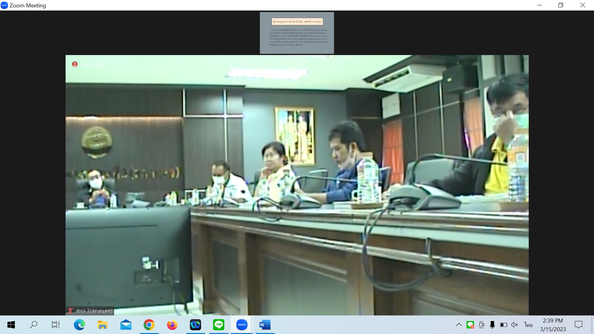 สำนักงานทางหลวงที่ 3 (สกลนคร) นายพัลลภ จันทร์งามปภากูล ผู้อำนวยการสำนักงานทางหลวงที่ 3 พร้อมด้วยนายวุฒิพงศ์ คำภูแสน รองผู้อำนวยการสำนักงานทางหลวงที่ 3 ตำแหน่งที่ 1 นายประวัติ เสวตวงษ์ รองผู้อำนวยการสำนักงานทางหลวงที่ 3 ตำแหน่งที่ 2 นายหนูกาญ เจริญไชย ผู้อำนวยการส่วนกฎหมายและกรรมสิทธิ์ที่ดิน นางนภาพิศ สุวรรณศรี ผู้อำนวยการส่วนบริหารงานทั่วไป นายอำนาจ สาไชยันต์ ผู้อำนวยส่วนเทคโนโลยีสารสนเทศ นายวีรวัฒน์ บุ่งนาแซง นิติกรปฏิบัติการ และเจ้าหน้าที่ที่เกี่ยวข้องร่วมประชุมชี้แจงวัตถุประสงค์และซักซ้อมความเข้าใจในการสำรวจความคิดเห็นประกอบ การประเมินผลสัมฤทธิ์พระราชทานบัญญัติทางหลวง พ.ศ.2535 ผ่านระบบ Zoom Cloud Meeting ณ ห้องประชุมทวีพัฒน์ ตินะมาส อาคารหลังใหม่