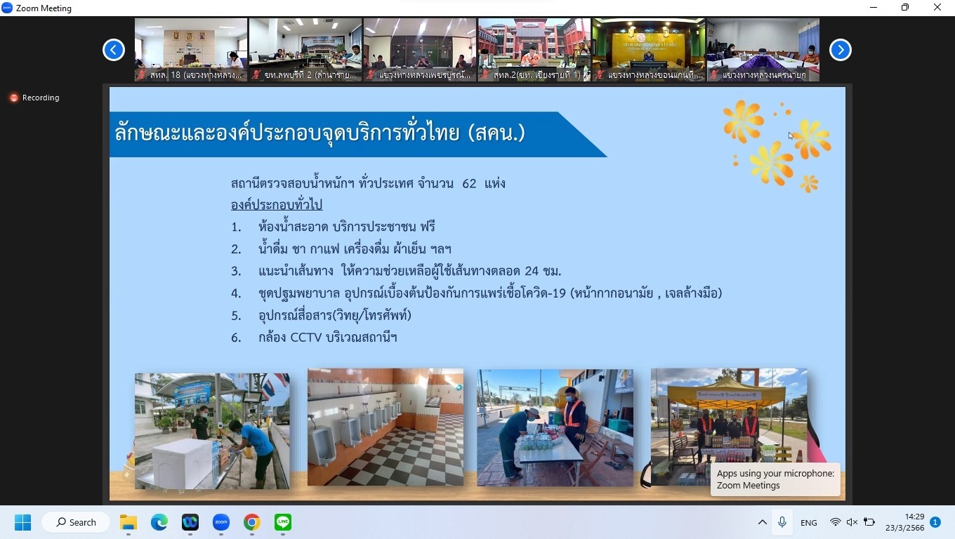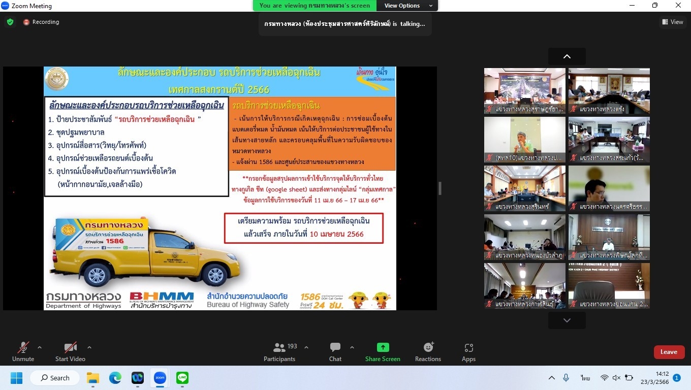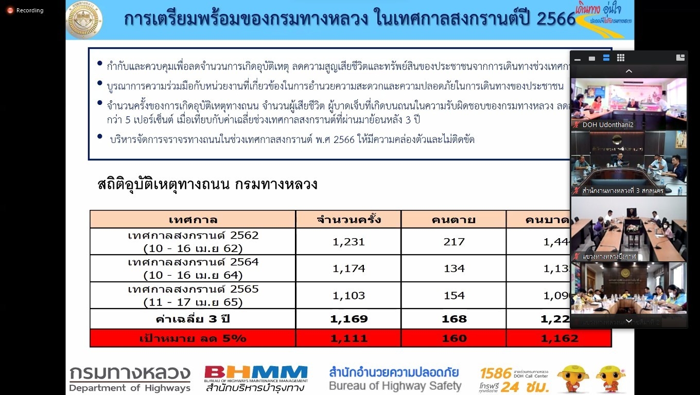 ในการประชุมครั้งนี้มีหน่วยงานสังกัดกรมทางหลวง ทั้ง 18 สำนักงานทางหลวง เข้าร่วมประชุมพร้อมกันโดยผ่านระบบ Zoom Cloud Meeting ของกรมทางหลวง