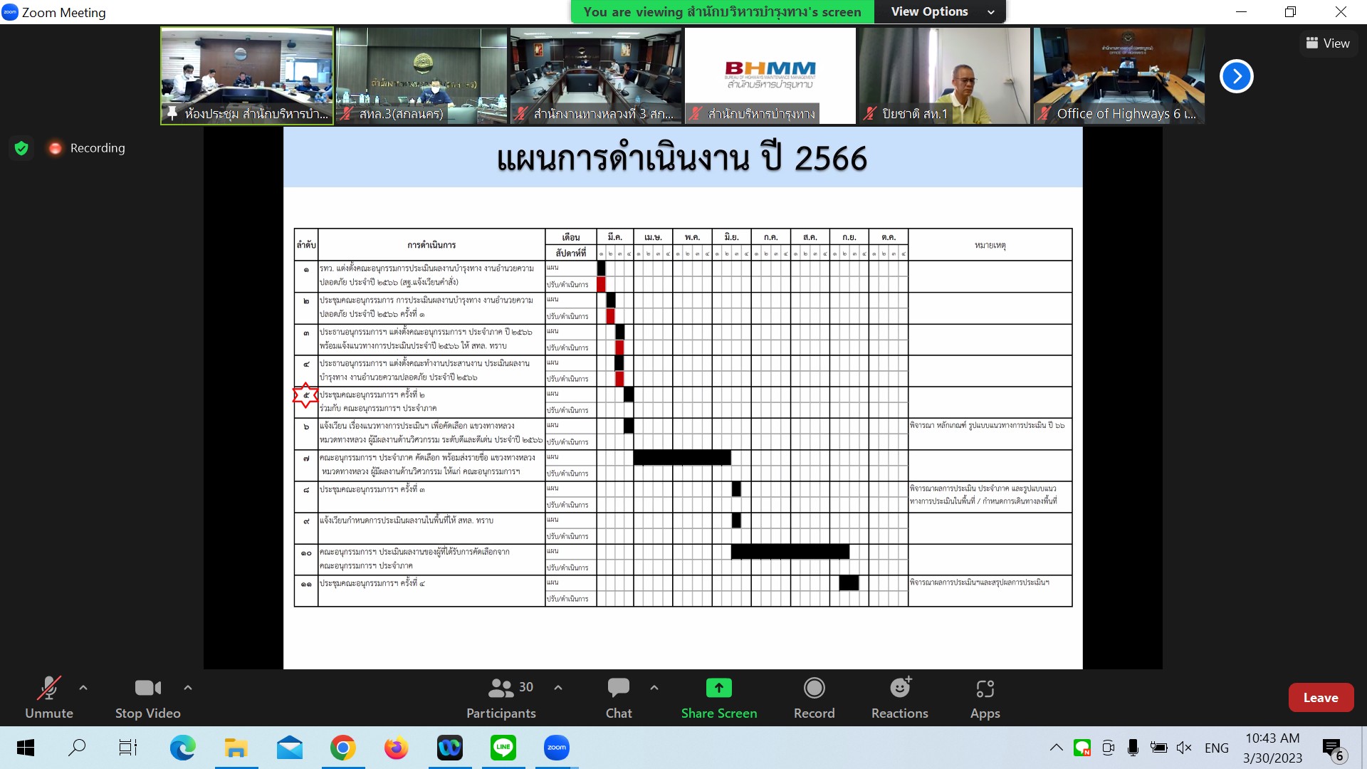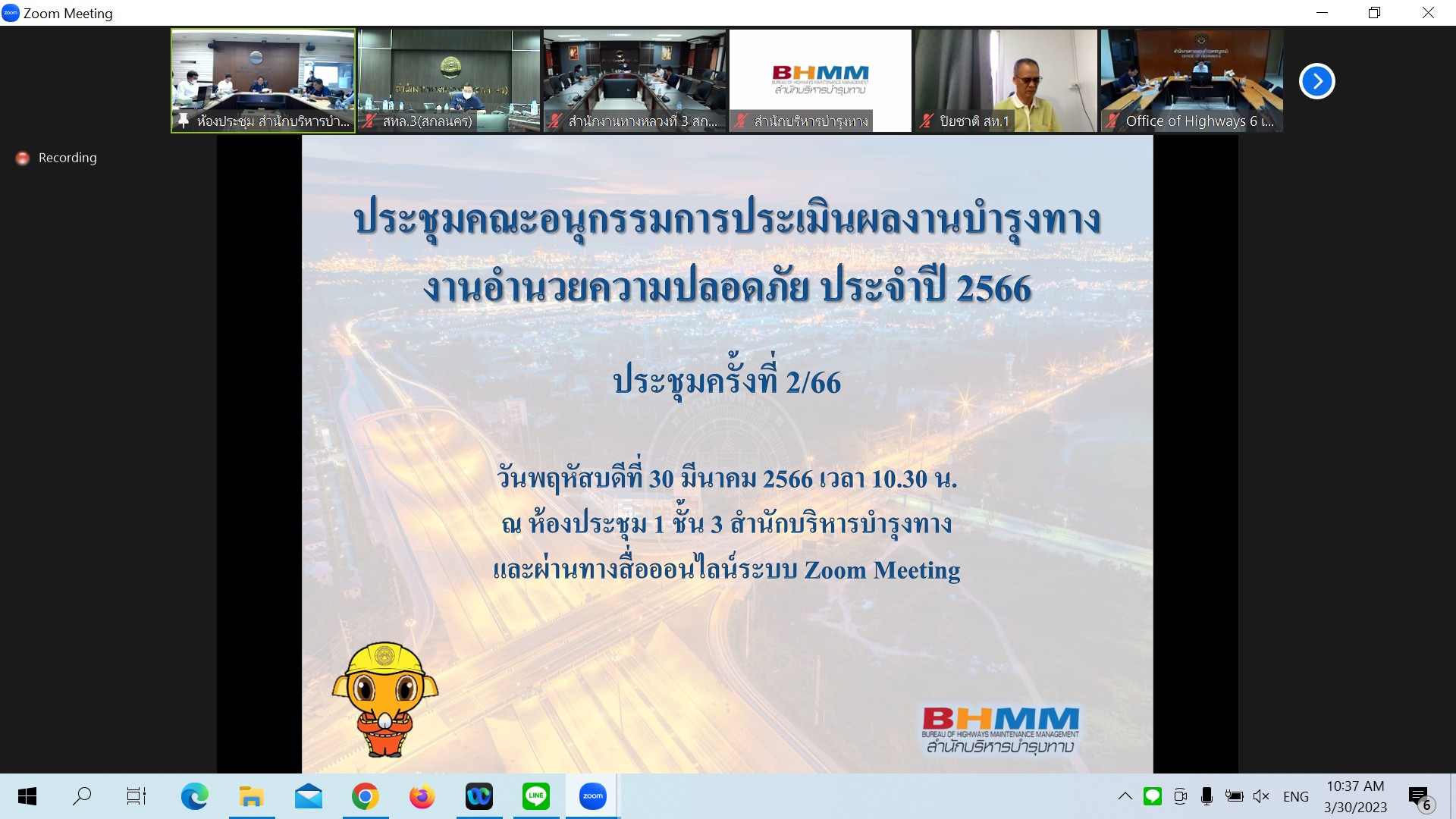 ในการประชุมครั้งนี้มีหน่วยงานสังกัดกรมทางหลวง ทั้ง 18 สำนักงานทางหลวง เข้าร่วมประชุมพร้อมกันโดยผ่านระบบ Zoom Cloud Meeting ของกรมทางหลวง
