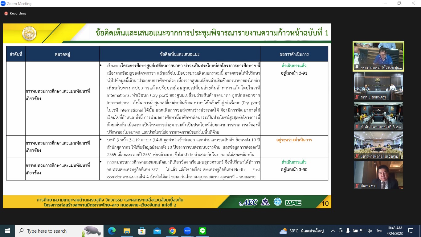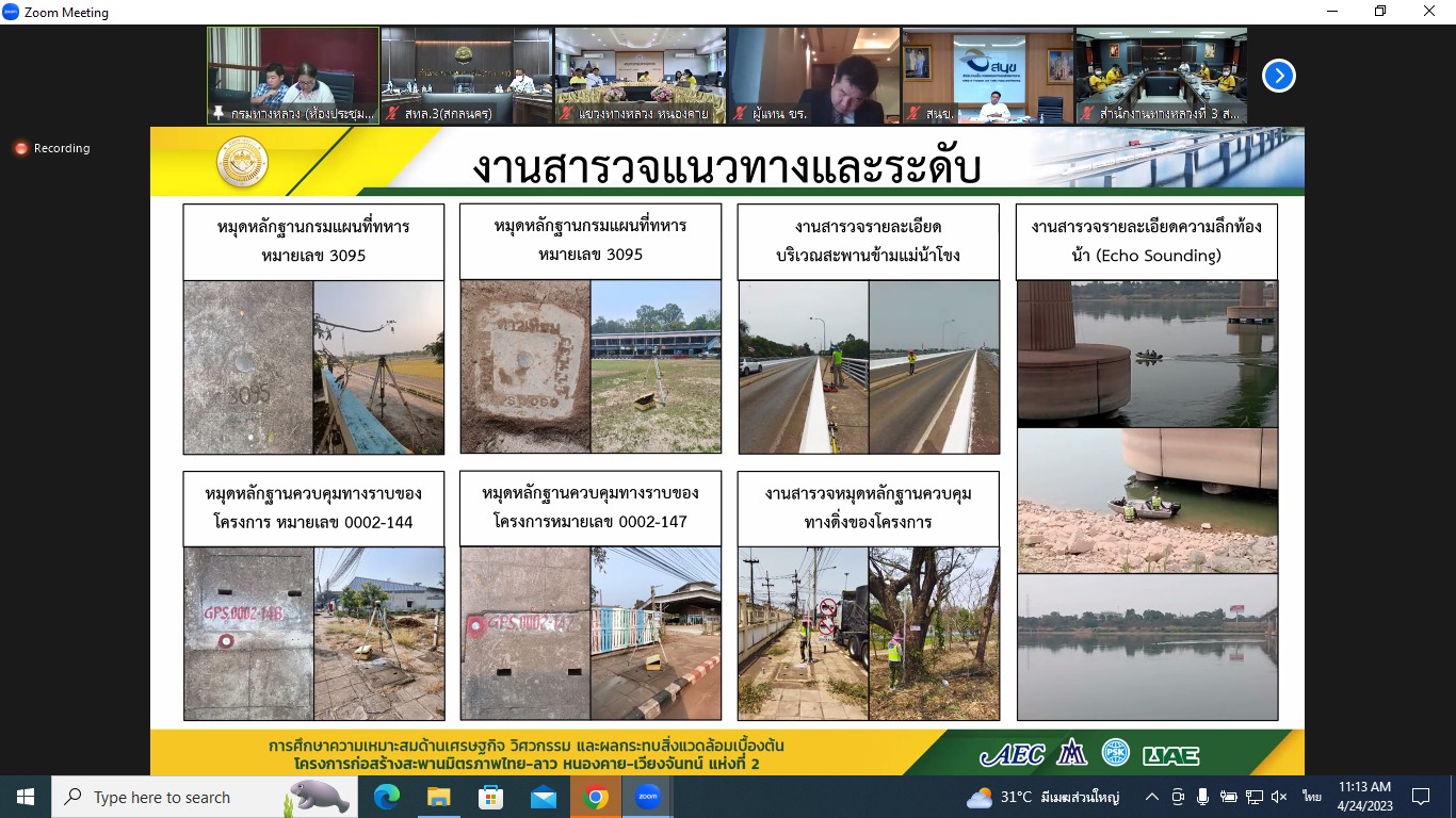 นายปิยพงษ์ จิวัฒนกุลไพศาล รองอธิบดีกรมทางหลวง ฝ่ายบริหารเป็นประธาน ประชุมพิจารณารายงานความก้าวหน้าฉบับที่ 2 (Progress Report 2) การศึกษาความเหมาะสมด้านเศรษฐกิจ วิศวกรรม และผลกระทบสิ่งแวดล้อมเบื้องต้น โครงการก่อสร้างสะพานมิตรภาพไทย-ลาว(หนองคาย-เวียงจันทน์ แห่งที่ 2 ผ่านระบบ Zoom Cloud Meetingจากห้องประชุมสวัสดิ์วรวิถี ชั้น2 อาคารพหลโยธิน กรมทางหลวง