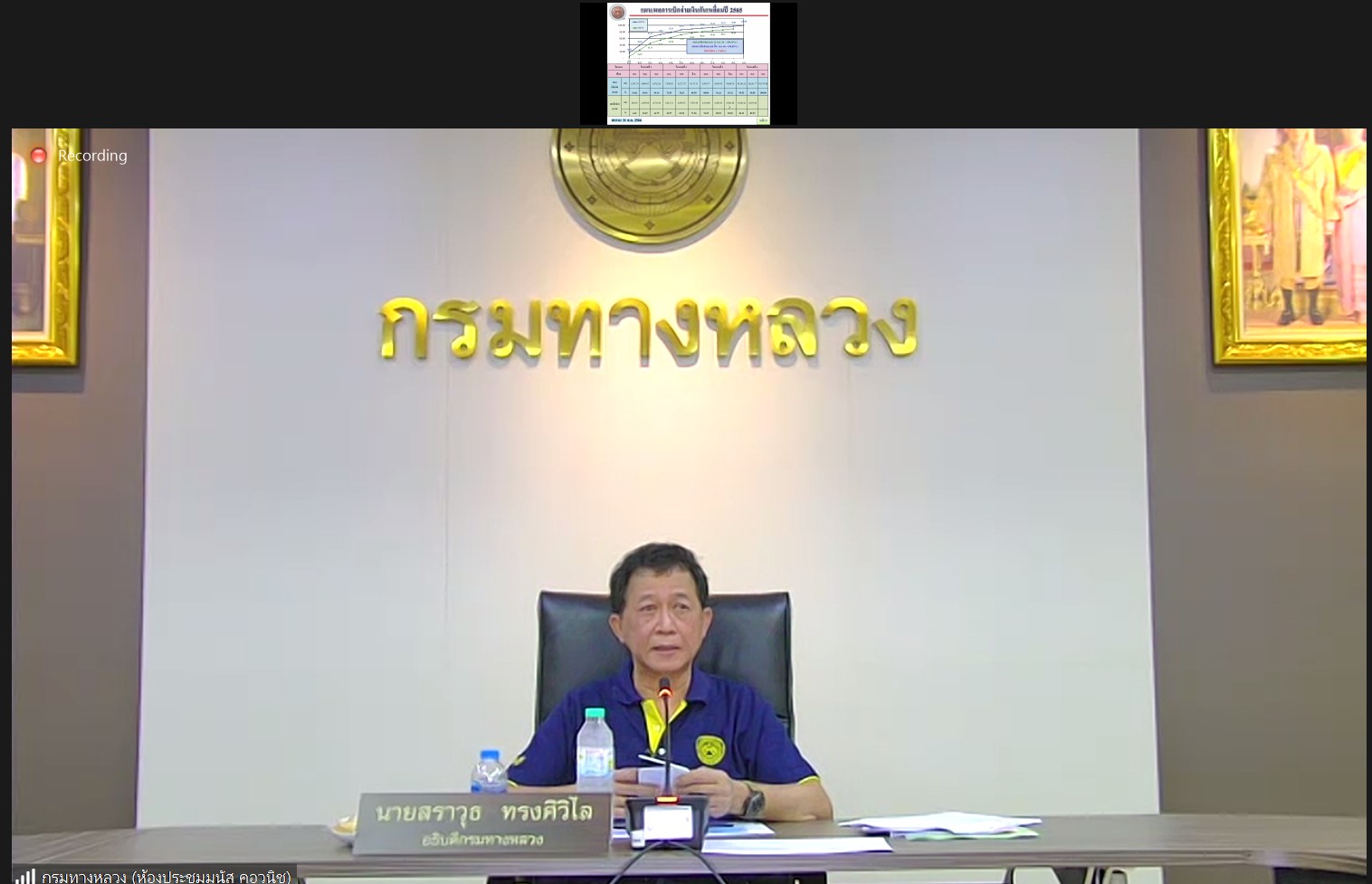 นายสราวุธ ทรงศิวิไล อธิบดีกรมทางหลวง เป็นประธาน ประชุมเร่งรัดติดตามผลการดำเนินงานและการเบิกจ่ายเงินงบประมาณประจำปี พ.ศ.2566 ของกรมทางหลวง โดยผ่านระบบ Zoom Cloud Meeting จากห้องประชุมมนัส คอวนิช กรมทางหลวง