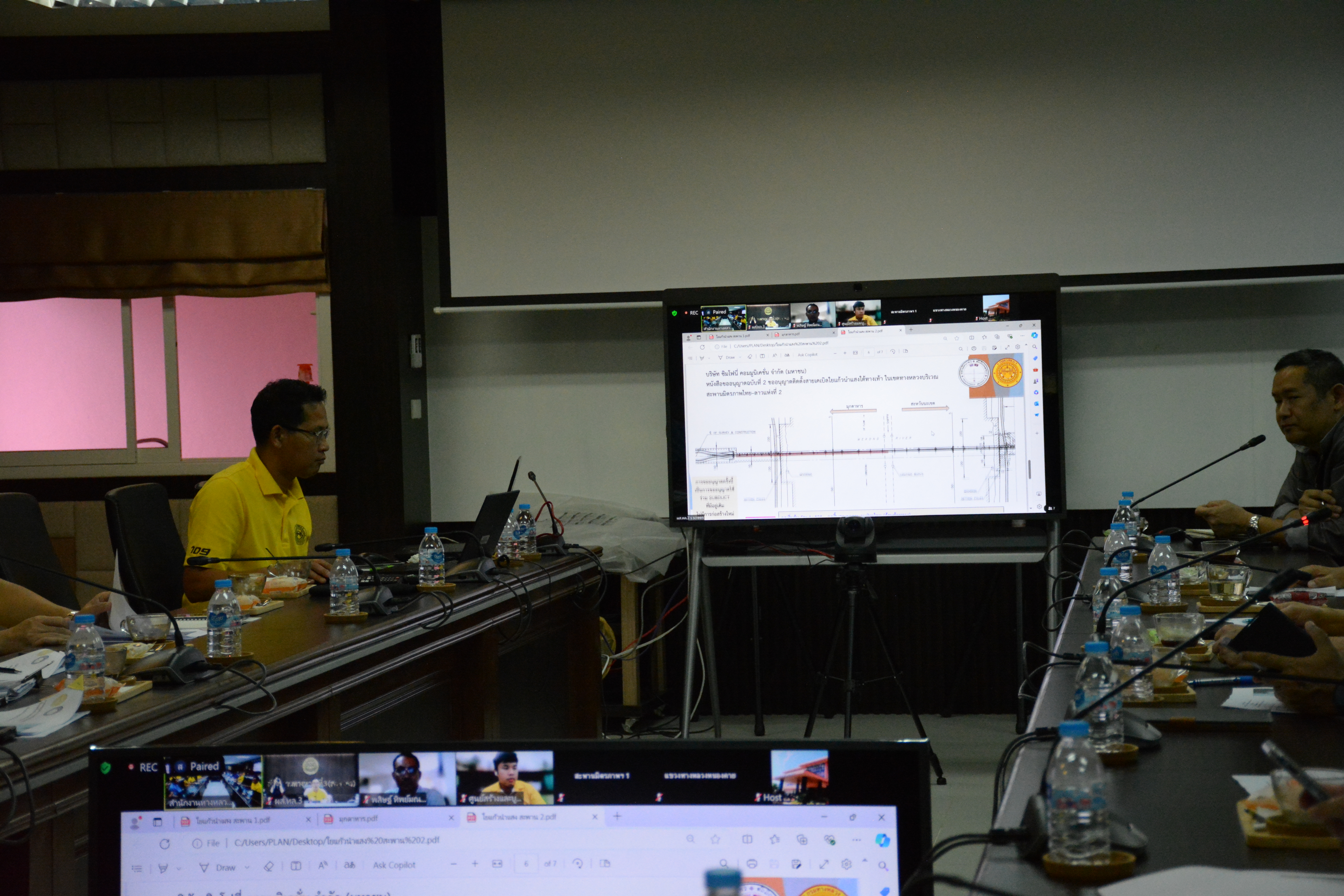 วันที่ 15 สิงหาคม 2567 เวลา 13.30 น. นายพัลลภ จันทร์งามปภากูล ผู้อำนวยการสำนักงานทางหลวงที่ 3 ประธานคณะกรรมการบริหารด่านสะพานมิตรภาพไทย-ลาว พร้อมด้วย นายประวัติ เสวตวงษ์ รองผู้อำนวยการสำนักงานทางหลวงที่ 3 ,นายพิชญ รุ่งเรืองวิโรจน์ ผู้อำนวยการแขววงทางหลวงนครพนม ,นายหนูกาญ เจริญไชย อำนวยการส่วนกฎหมายและกรรมสิทธิ์ที่ดิน, ผู้จัดการด่านสะพานมิตรภาพไทย-ลาว ทั้ง 3 แห่ง คือแห่งที่ 1 (หนองคาย-เวียงจันทน์) แห่งที่ 2 (มุกดาหาร-สะหวันนะเขต) และแห่งที่ 3(นครพนม-คำม่วน) และเจ้าหน้าที่ที่เกี่ยวข้อง ส่วนแผนงาน ส่วนอำนวยความปลอดภัย ส่วนกฎหมายและกรรมสิทธิ์ที่ดิน และนิติกร เข้าร่วมประชุมคณะกรรมการบริหารด่านสะพานมิตรภาพไทย-ลาว (ในเขตพื้นที่ควบคุมของ สำนักงานทางหลวงที่ 3 (สกลนคร) เพื่อพิจารณาการขออนุญาตติดตั้งสายเคเบิลใยแก้วนำแสงบริเวณสะพานมิตรภาพไทย-ลาว แห่งที่ 1 (หนองคาย - เวียงจันทน์) และ สะพานมิตรภาพไทย-ลาว แห่งที่ 2 (มุกดาหาร-สะหวันนะเขต) ณ ห้องประชุมทวีพัฒน์ ตินะมาส ชั้น 3 โดยมีแขวงทางหลวงในสังกัด, สำนักสำรวจและออกแบบ และศูนย์สร้างและบูรณะสะพานที่2 (ขอนแก่น) เข้าประชุมออนไลน์ผ่านทาง Zoom Meeting ของสำนักงานทางหลวงที่ 3 (สกลนคร)