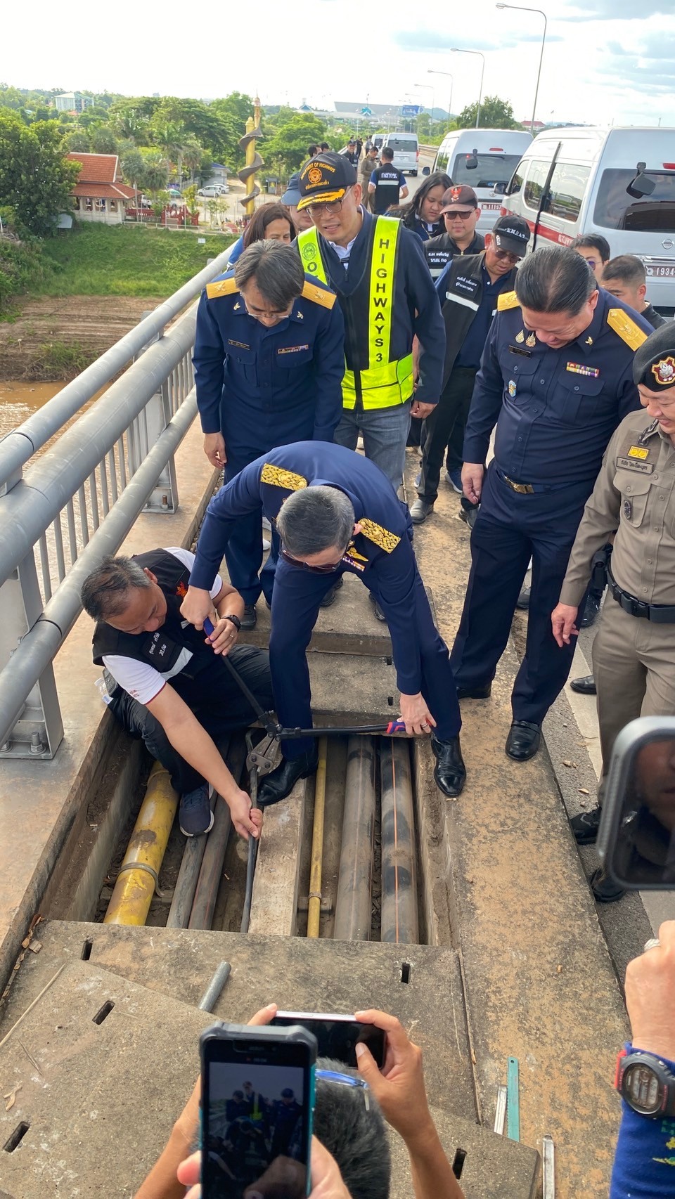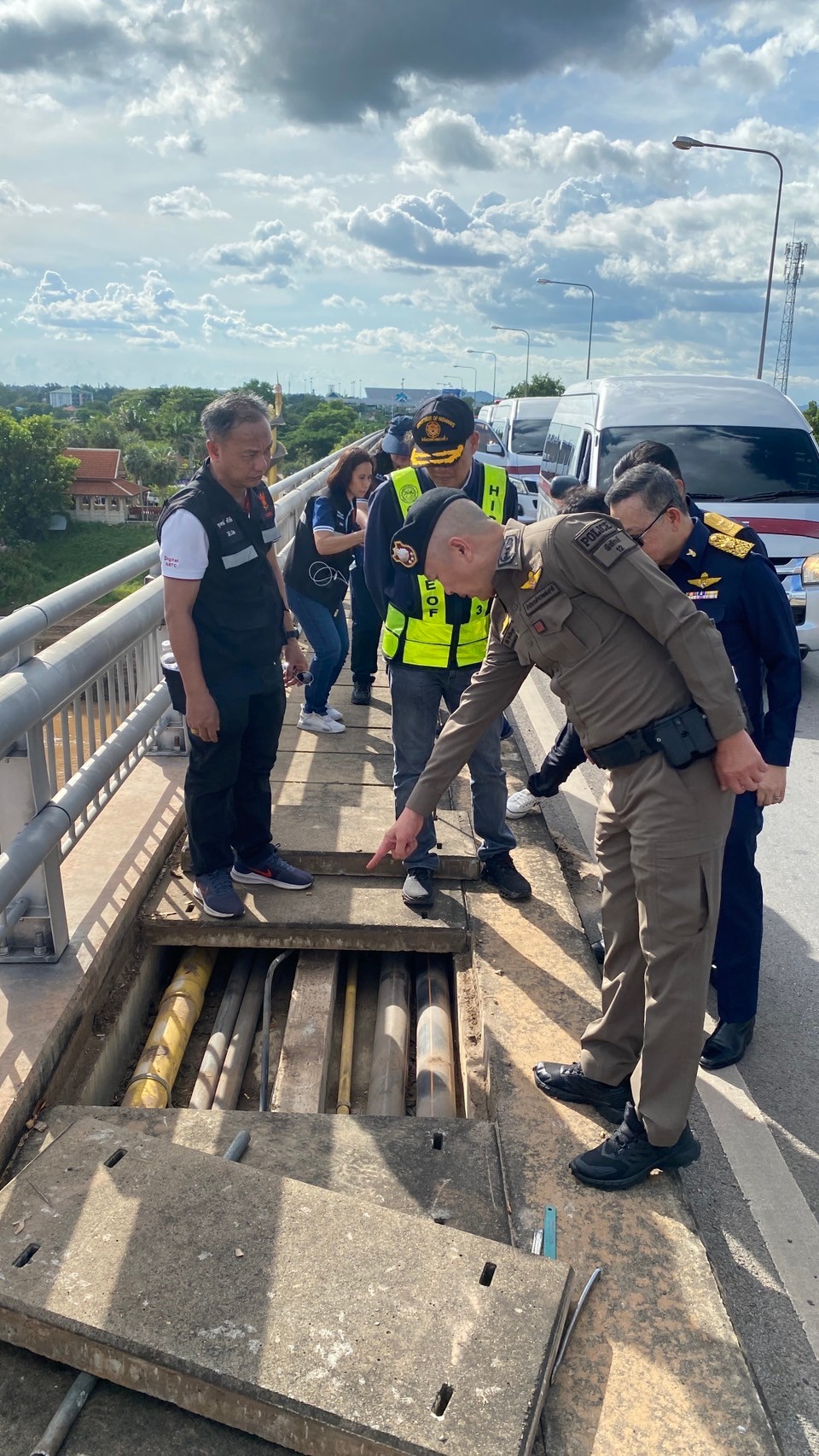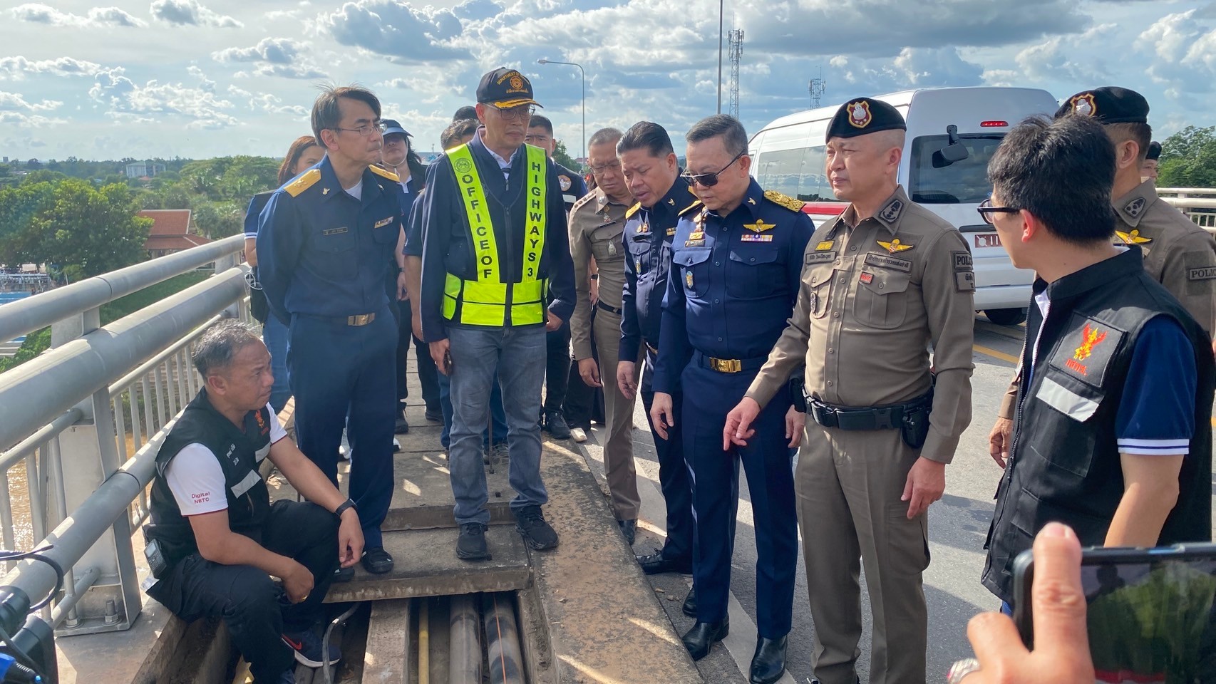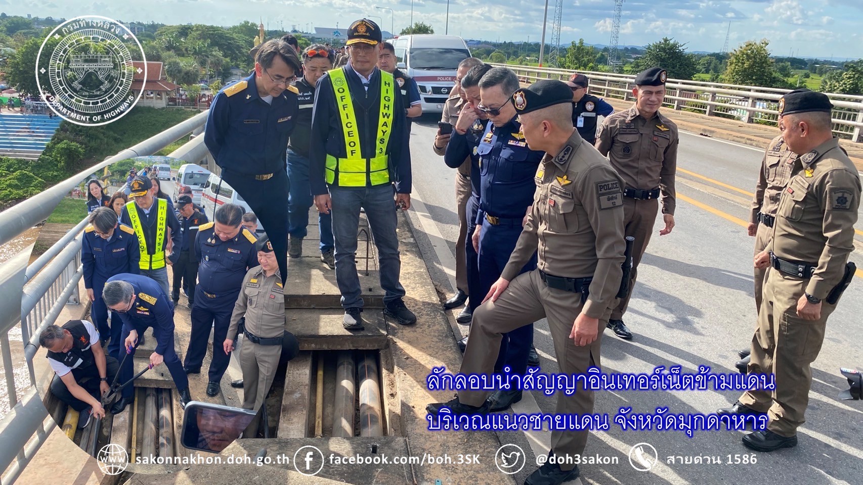 วันที่ 20 ตุลาคม 2567 พล.ต.ท.ดร.ธัชชัย ปิตะนีละบุตร ผู้ช่วย ผบ.ตร พร้อมด้วย พล.ต.ต.ชัชชัย ผบก.ภ.จว.มุกดาหาร พล.ต.อ.ดร.ณัฐธร เพราะสุนทร กสทช. นายไตรรัตน์ วิริยะศิริกุล รองเลขาธิการ รักษาการแทน เลขาธิการ กสทช. นายพัลลภ จันทร์งามปภากูล ผู้อำนวยการสำนักงานทางหลวงที่ 3 และเจ้าหน้าที่ด่านศุลกากรสะพานมิตรภาพไทย-ลาว แห่งที่ 2 (มุกดาหาร–สะหวันนะเขต) ลงพื้นที่จุดที่เกิดเหตุคนร้ายลักลอบนำสัญญาอินเทอร์เน็ตข้ามแดนบริเวณแนวชายแดนจังหวัดมุกดาหาร บนสะพานมิตรภาพไทย-ลาว แห่งที่ 2 (มุกดาหาร–สะหวันนะเขต)