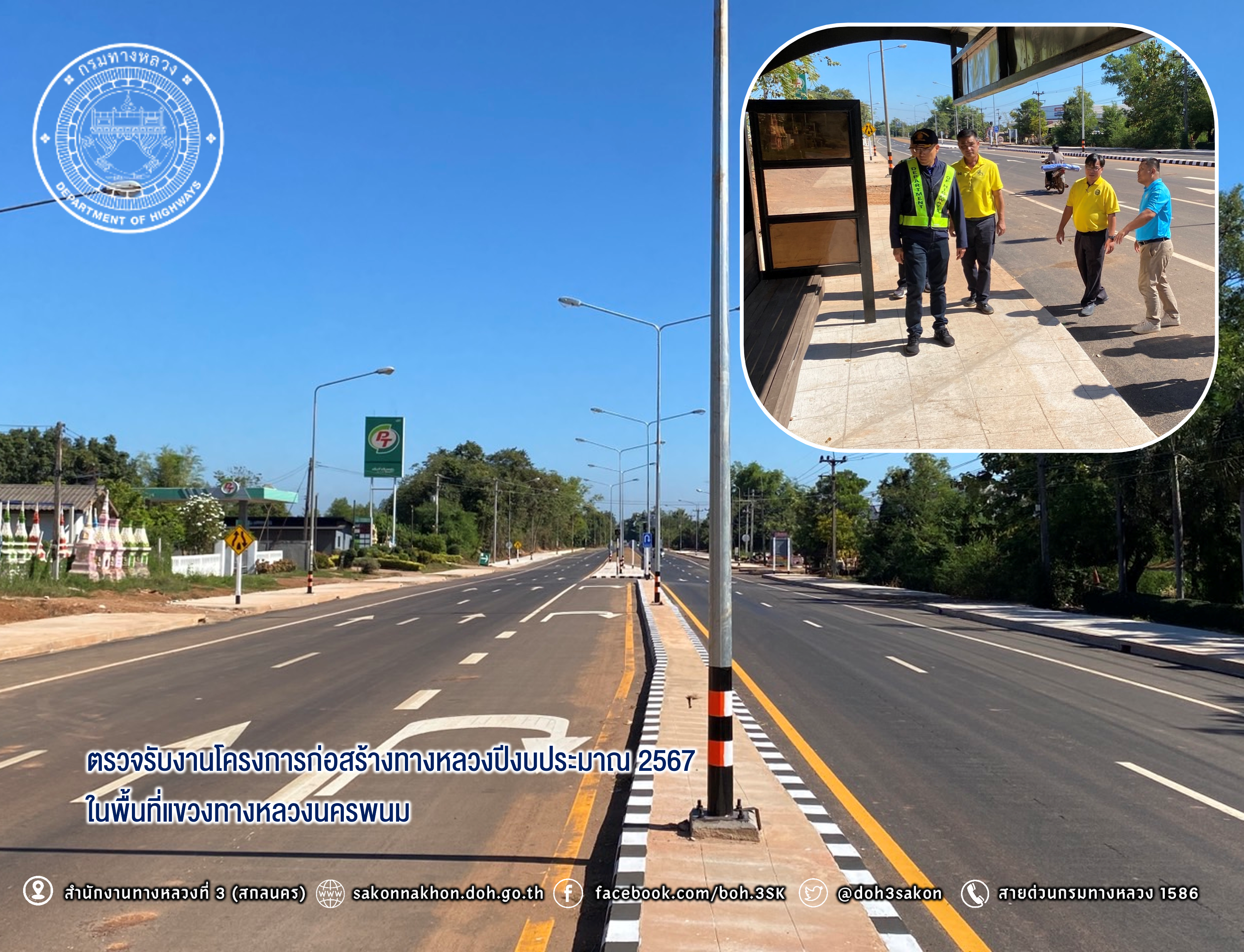 วันที่ 14 พฤศจิกายน 2567 นายพัลลภ จันทร์งามปภากูล ผู้อำนวยการสำนักงานทางหลวงที่ 3 ประธานกรรมการตรวจรับพัสดุ พร้อมด้วยนายพิชญ รุ่งเรืองวิโรจน์ ผู้อำนวยการแขวงทางหลวงนครพนม กรรมการตรวจรับพัสดุ และคณะกรรมการตรวจรับพัสดุ ตรวจรับงานโครงการก่อสร้างทางหลวงปีงบประมาณ 2567 จำนวน 2 โครงการฯ ในพื้นที่แขวงทางหลวงนครพนม