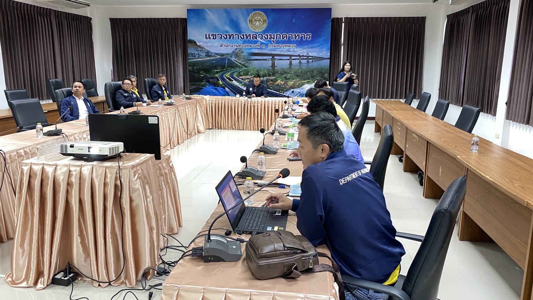 โครงการที่ 2 เวลา 11.00 น. ตรวจรับงานก่อสร้างเพิ่มช่องจราจรระดับภาค ทางหลวงหมายเลข 238 ตอน ทางเลี่ยงเมืองมุกดาหาร ระหว่าง กม.8+950 - กม.10+150 ปริมาณ 1 แห่ง (1.200 กม.) วงเงิน 49,993,772 บาท มีบริษัท ห้างหุ้นส่วนจำกัด ชัยมงคลมุกดาหาร เป็นผู้รับจ้าง (ตรวจรับงานงวดที่ 2 (งวดสุดท้าย)) เพื่อให้การดำเนินงานก่อสร้างทางหลวงแผ่นดินได้ตามแบบมาตรฐานของกรมทางหลวง พร้อมรับฟังบรรยายสรุปผลการดำเนินงานของโครงการฯ ณ ห้องประชุมแขวงทางหลวงมุกดาหาร ควบคุมการก่อสร้างโดยส่วนควบคุมงานก่อสร้างทาง สำนักงานทางหลวงที่ 3 (สกลนคร) กรมทางหลวง กระทรวงคมนาคม
