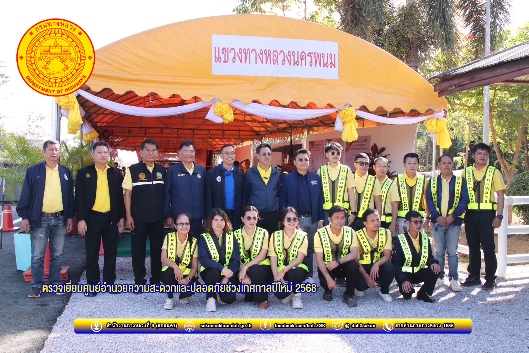 วันที่ 29 ธันวาคม 2567 เวลา 09.30น. นายพัลลภ จันทร์งามปภากูล ผู้อำนวยการสำนักงานทางหลวงที่ 3 พร้อมด้วยนายเดชา พรวนพิทักษ์ รองผู้อำนวยการสำนักงานทางหลวงที่ 3 ตำแหน่งที่ 1 และนายพิชญ รุ่งเรืองวิโรจน์ ผู้อำนวยการแขวงทางหลวงนครพนม ตรวจเยี่ยมศูนย์อำนวยความปลอดภัยช่วงเทศกาลปีใหม่ 2568 ของแขวงทางหลวงนครพนม