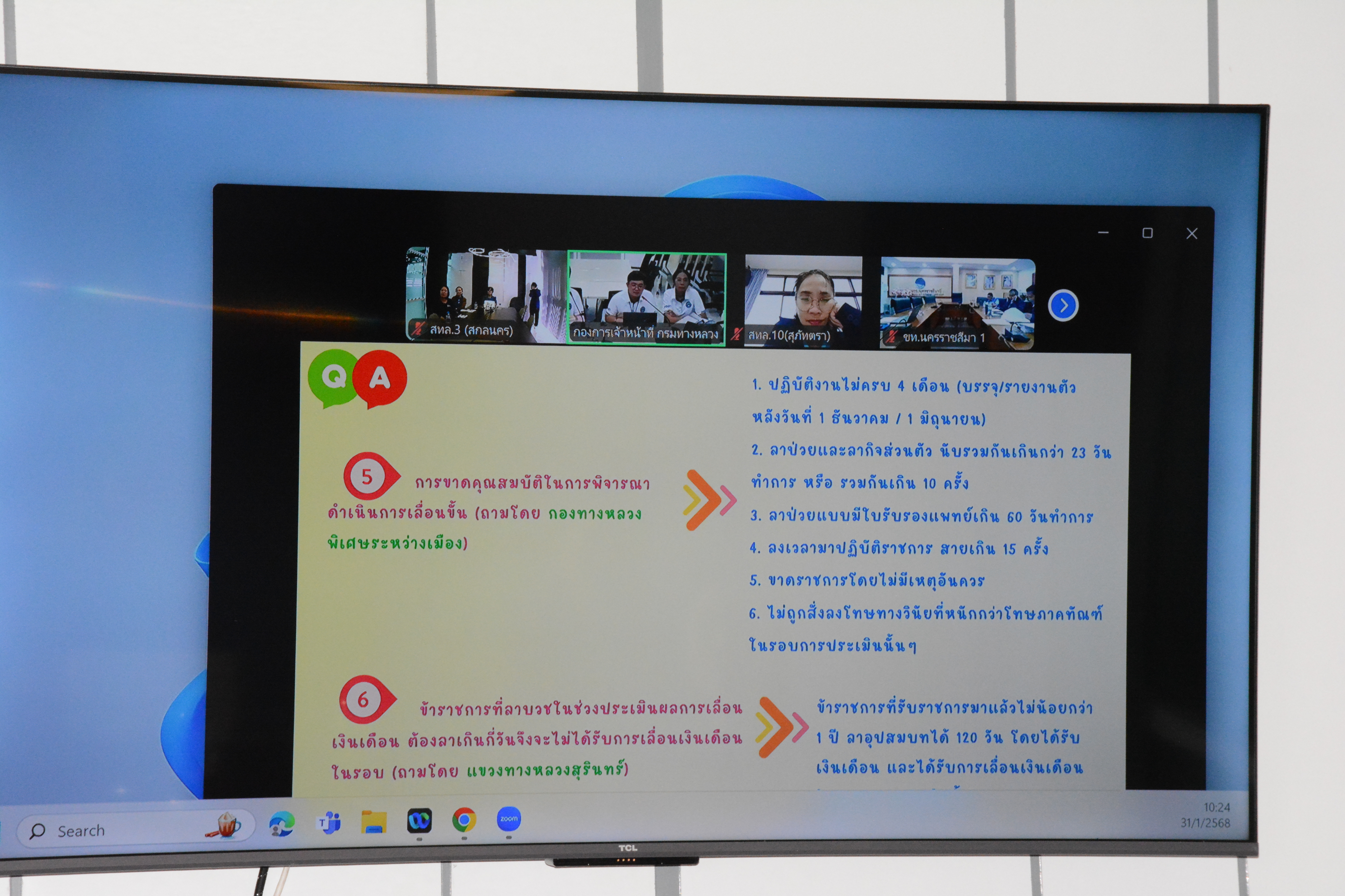 วันที่ 31 มกราคม 2568 เวลา 10.00 - 12.00 น.นางนภาพิศ สุวรรณศรี ผบ.ทล.3 พร้อมด้วย เจ้าหน้าที่งานสารบรรณ ได้รับมอบหมายจากผู้อำนวยการสำนักงานทางหลวงที่ 3 ให้เข้าร่วมกิจกรรม HRM CLINIC คลินิกให้คำปรึกษาด้านการบริหารทรัพยากรบุคคล กรมทางหลวง ปีงบประมาณ พ.ศ.2568 ช่วงที่ 1 ในหัวข้อ “หลักเกณฑ์การประเมินผลการปฏิบัติราชการ” ผ่านระบบ Zoom Cloud Meeting ณ ห้องประชุมชั้น 2 อาคารหลังใหม่ สำนักงานทางหลวงที่ 3 (สกลนคร)