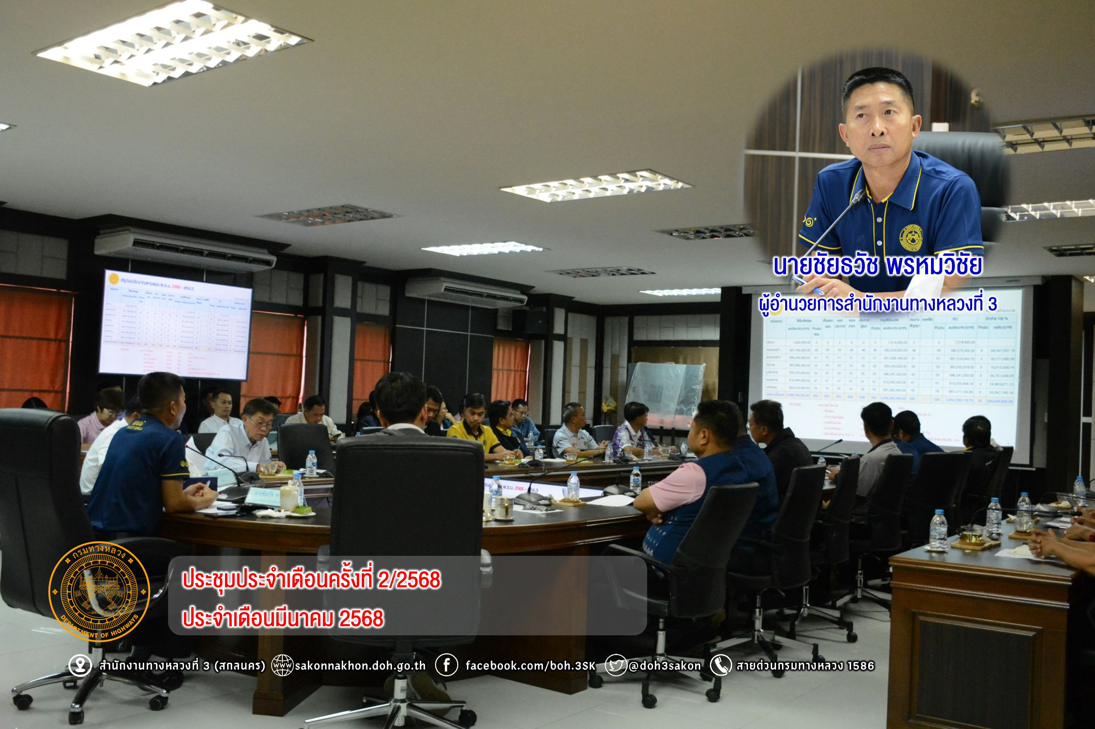 ณ ห้องประชุมทวีพัฒน์ ตินะมาส ชั้น 3 สำนักงานทางหลวงที่ 3 (สกลนคร)