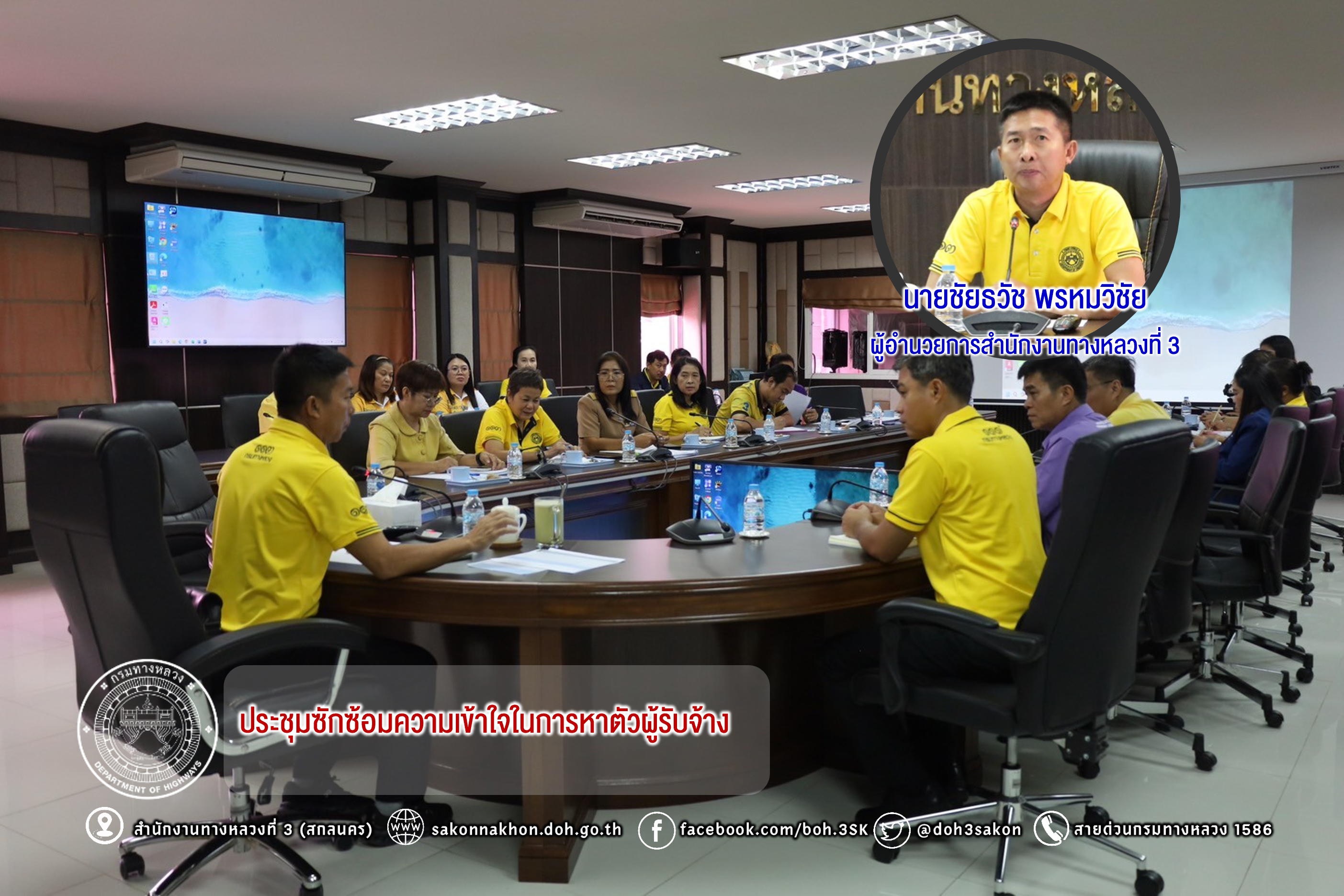 วันที่ 16 มิถุนายน 2568 เวลา 10.00 น. นายชัยธวัช พรหมวิชัย ผู้อำนวยการสำนักงานทางหลวงที่ 3 พร้อมด้วย นางนภาพิศ สุวรรณศรี ผู้อำนวยการส่วนบริหาร, นายชินนพัทธ์ มุลทาทอง ผู้อำนวยการส่วนแผนงาน, รองผู้อำนวยการแขวงทางหลวงในสังกัด (ฝ่ายบริหาร), หัวหน้างานพัสดุและสัญญา และเจ้าหน้าที่ที่เกี่ยวข้อง ของแขวงทางหลวงในสังกัด ได้เข้าร่วมประชุมซักซ้อมความเข้าใจในการหาตัวผู้รับจ้าง สำนักงานทางหลวงที่ 3 (สกลนคร) ณ ห้องประชุมทวีพัฒน์ ตินะมาส ชั้น 3 (อาคารหลังใหม่)