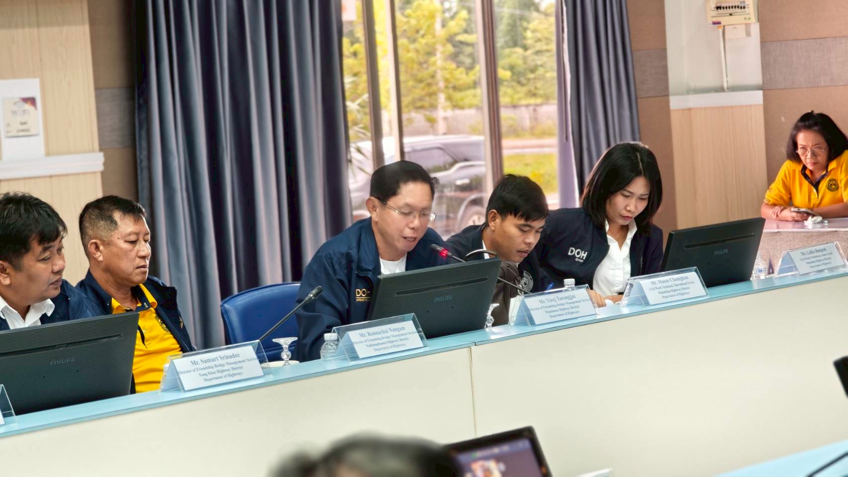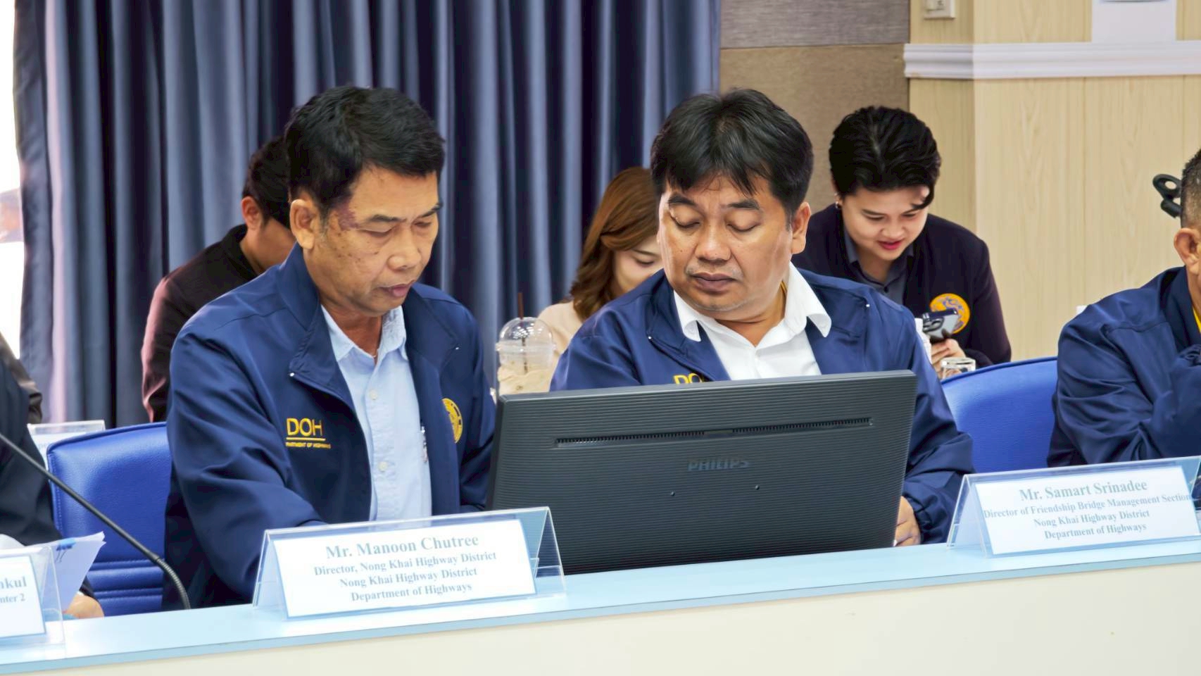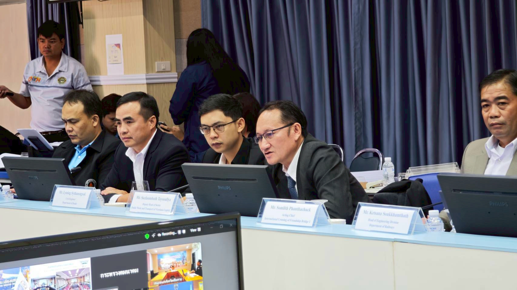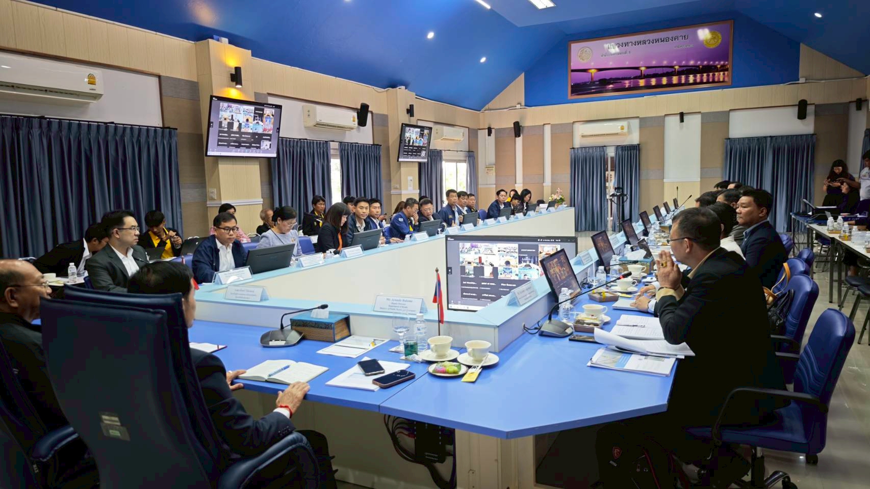 วันที่ 8 กรกฎาคม 2568 นายธานินทร์ ริรัตนพงษ์ วิศวกรใหญ่ด้านวางแผนและวางโครงการก่อสร้าง กรมทางหลวง เป็นประธานการประชุมฝ่ายไทยและนายอาดนาดา บูลม รองอธิบดีกรมขัวทาง สปป.ลาว เป็นประธานการประชุมฝ่ายลาว ในการประชุมคณะกรรมาธิการบริหารและบำรุงรักษาสะพานมิตรภาพไทย - ลาว แห่งที่ 1 – 4 โดยมีนายธันวิน สวัสดิศานต์ ผู้อำนวยการสำนักบริหารโครงการทางหลวงระหว่างประเทศ นายชัยธวัช พรหมวิชัย ผู้อำนวยการสำนักงานทางหลวงที่ 3 นายมะนูญ ชูตรี ผู้อำนวยการแขวงทางหลวงหนองคาย และนายพิชญ รุ่งเรืองวิโรจน์ ผู้อำนวยการแขวงทางหลวงนครพนม พร้อมด้วยคณะกรรมาธิการฯ ฝ่ายไทยและฝ่ายลาว และเจ้าหน้าที่ที่เกี่ยวข้องเข้าร่วมประชุม ณ ห้องประชุมอาคารอเนกประสงค์ หน่วยบำรุงรักษาสะพานมิตรภาพ (หนองคาย - เวียงจันทน์) แขวงทางหลวงหนองคาย กรมทางหลวง จังหวัดหนองคาย และผ่านสื่ออิเล็กทรอนิกส์ (Zoom Video Conference)