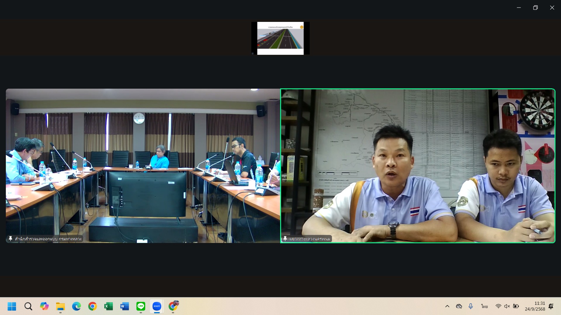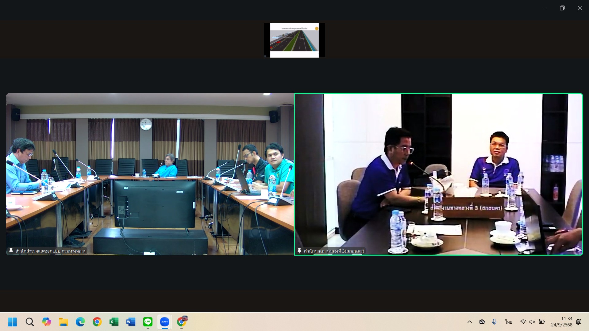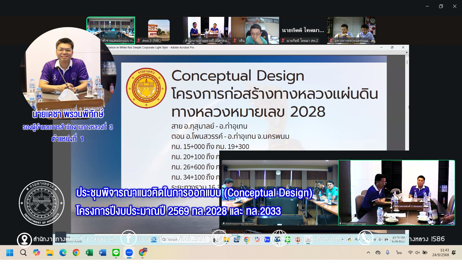 วันที่ 24 กันยายน 2568 เวลา 10.00 น. นายชัยธวัช พรหมวิชัย ผู้อำนวยการสำนักงานทางหลวงที่ 3 ได้มอบหมายให้ นายเดชา พรวนพิทักษ์ รองผู้อำนวยการสำนักงานทางหลวงที่ 3 พร้อมด้วย นายนายธนัชพงศ์ เลิศปิติพิทักษ์ ผู้อำนวยการส่วนสำรวจและออกแบบ 3 ให้เข้าร่วมประชุมพิจารณาแนวคิดในการออกแบบ (Conceptual Design) โครงการปีงบประมาณปี 2569 เพื่อพิจารณาแนวทางในการออกแบบให้เหมาะสม และเกิดประโยชน์สูงสุดกับโครงการฯ ทั้งหมด 2 โครงการ ดังนี้