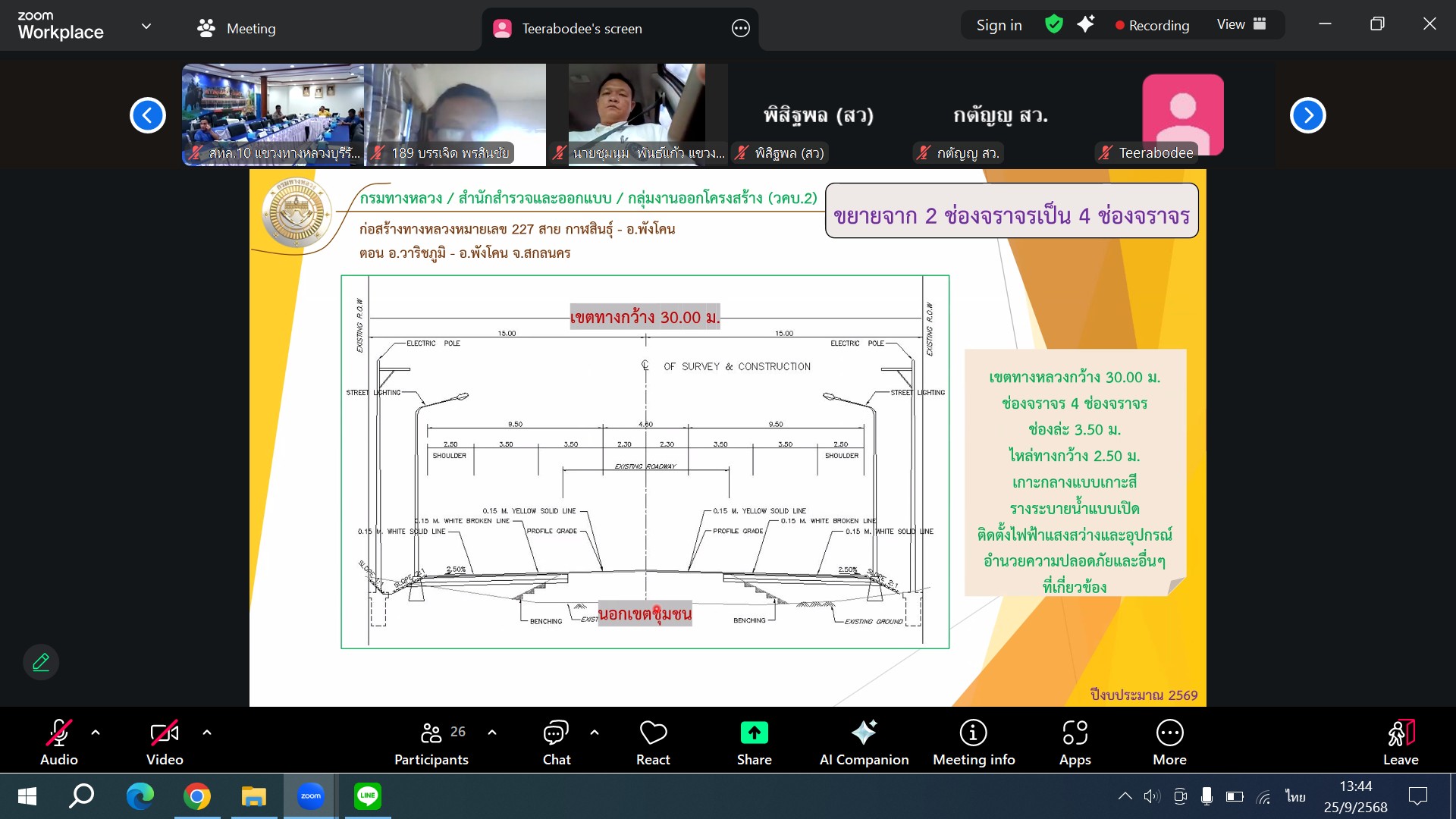ประชุมผ่านสื่ออิเล็กทรอนิกส์ โปรแกรม Zoom ณ ห้องประชุมชั้น 2 อาคารหลังใหม่ สำนักงานทางหลวงที่ 3 (สกลนคร) โดยมี นายสิทธิชัย บุญสะอาด วิศวกรใหญ่ด้านสำรวจและออกแบบ เป็นประธานฯ