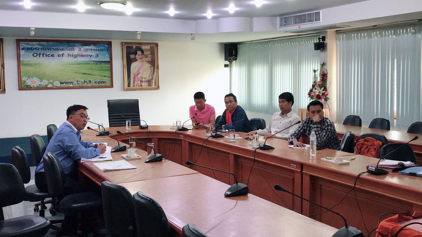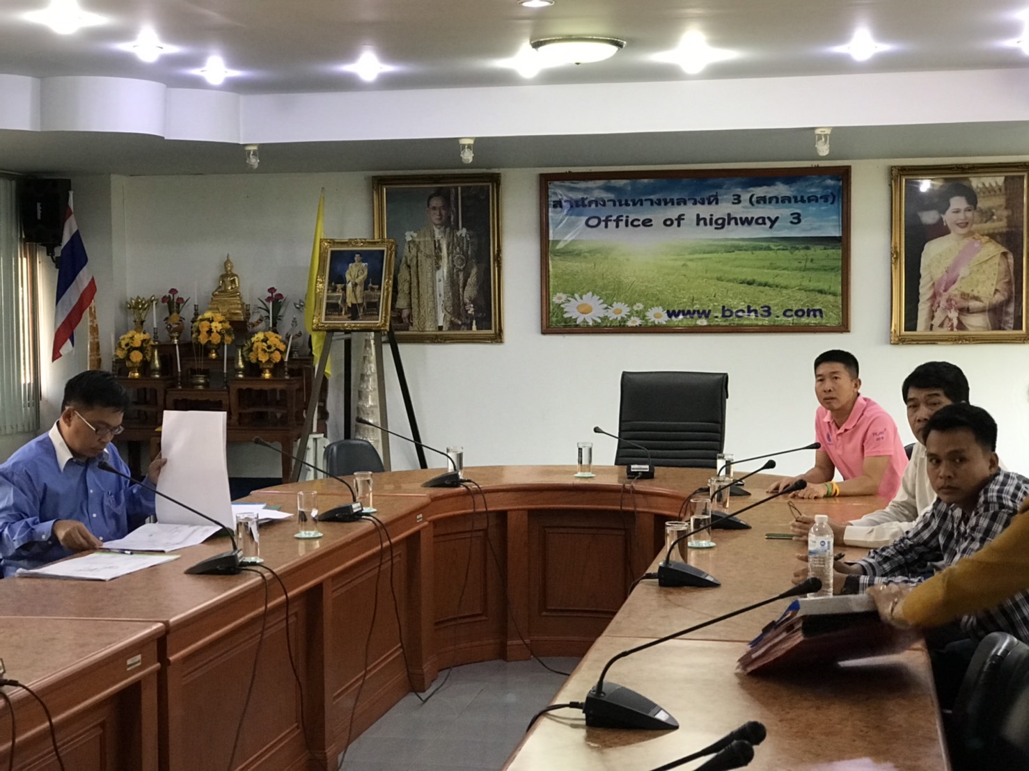 วันที่ 12 กุมภาพันธ์ 2562 เวลา10.30น. สำนักงานทางหลวงที่ 3 (สกลนคร) ประชุมแก้ไขปรับแบบก่อสร้าง ตามสัญญาที่ นค8/2562 ลว.18 ตุลาคม 2561 โดยมีนายชัยธวัช พรหมวิชัย รองผู้อำนวยการสำนักงานทางหลวงที่ 3 เป็นประธานกรรมการตรวจการจ้าง งานจ้างเหมาทำการปรับปรุงทางหลวงผ่านย่านชุมชน ทางหลวงหมายเลข 211CS.0102 ตอน ศรีเชียงใหม่ – ห้วยศรีดา ระหว่าง กม.51+000-52+300 ปริมาณงาน 1 แห่ง วงเงิน 24,920,000บาท มี หจก.เอสเอ็ม.ซี.การโยธาเป็นผู้รับจ้าง สัญญาเริ่มวันที่29 ตุลาคม2562 สิ้นสุดสัญญาวันที่17มีนาคม 2562 รวมเวลาทำการ 150 วัน เนื่องจากโครงการฯ ในช่วงดำเนินการ กม.51+000 – 52+900 ด้านซ้ายทาง มีร่องระบายน้ำ แบบดาดคอนกรีต กว้าง 3.60 ลึก 1.00 เมตร ของกรมชลประทาน ห่างจากศูนย์กลางถนน 11.30 เมตร อยู่ในแนวการขยายถนนทำให้ไม่สามารถก่อสร้างได้ตามรูปแบบได้ เพื่อให้โครงการฯสามารถก่อสร้างตามรูปแบบเดิม จึงขออนุมัติปรับแนวก่อสร้าง(Center line) จากแนวเดิมโดยเป็นไปตามหลักเกณฑ์การแก้ไขรูปแบบและปริมาณงานในงานจ้างเหมาไม่ถือเป็นการแก้ไขแบบที่จะต้องแก้ไขเปลี่ยนแปลงลงสัญญา และขอแก้ไขจุกกลับรถ กม.51+700จากรูปแบบเดิมแบบเต็มรูปแบบ เป็นแบบไม่เต็มรูปแบบ(ไม่ทำการขยายผิวจราจร) เนื่องจากติดร่องระบายน้ำของกรมชลประทาน ในการประชุมครั้งนี้มีคณะกรรมการตรวจการจ้างได้แก่ นายพงษ์ศักดิ์ อาจลา (วบ.ทล.3) ,นายมนูญ ชูตรี รองผู้อำนวยการแขวงทางหลวงหนองคาย(ฝ่ายปฏิบัติงาน),นายสมชาย สุทธิบาล วิศวกรโยธาชำนาญงาน(หน.แผนงานแขวงฯหนองคาย,นายสนธิ ศรีสุข นายช่างโยธาชำนาญงาน เป็นผู้ควบคุมการก่อสร้าง ,นางสำนวน ทำเนาว์ หัวหน้าพัสดุและสัญญา และตัวแทนจากผู้รับจ้าง ร่วมประชุม ณ ห้องประชุมทวีพัฒน์ ตินะมาส